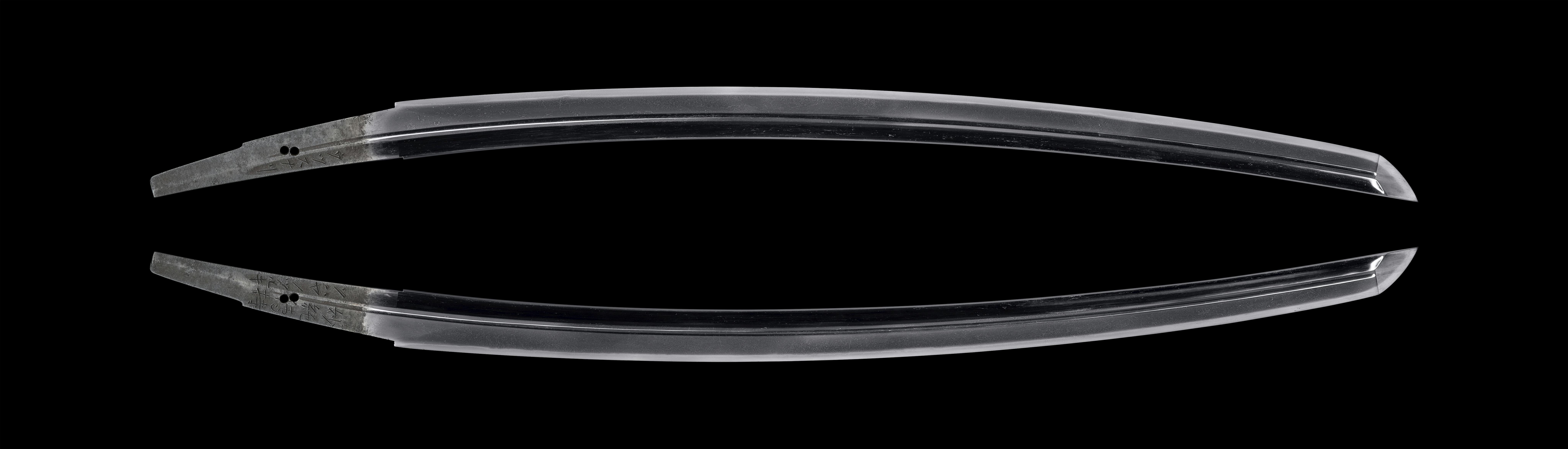持ち手に該当する茎(なかご)部分には、片面に「妙純傳持(みょうじゅんでんじ)」と「ソハヤノツルキ」が刻印され、その裏面には「ウツスナリ」が刻印されております。
