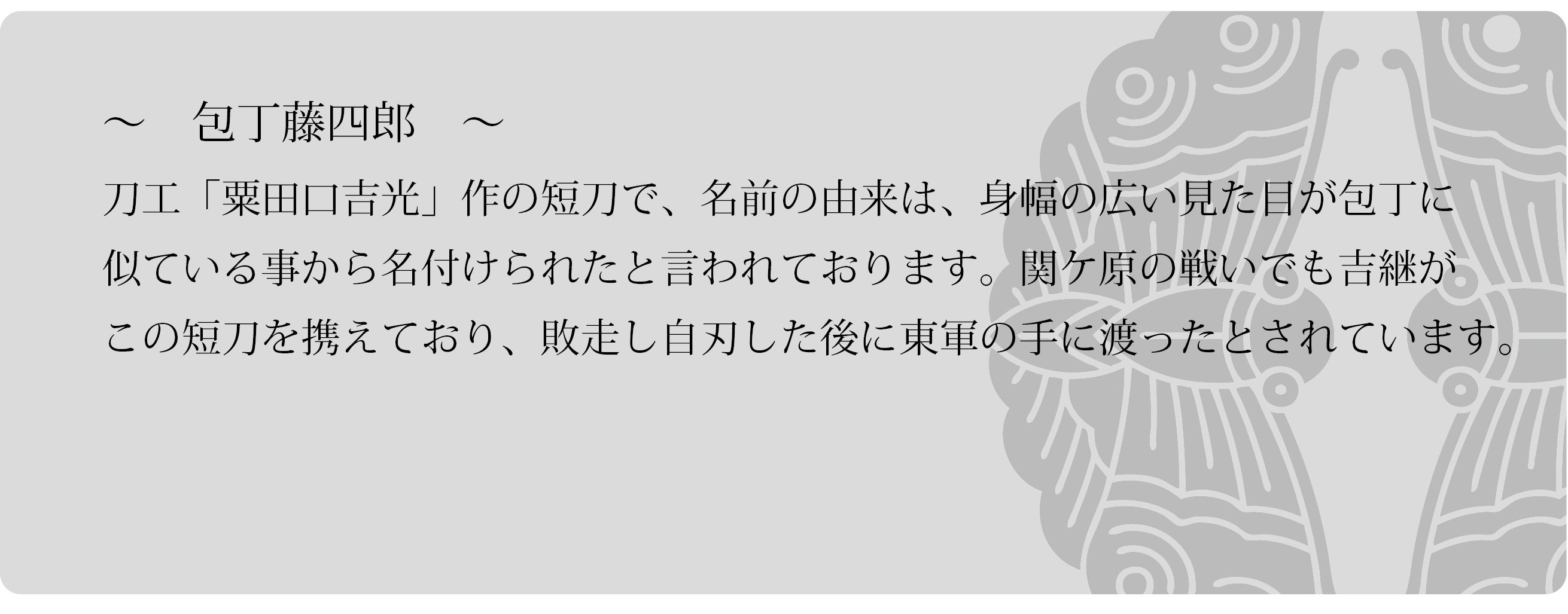 ④病を患いながらも盟友・石田三成に最後まで従った義将・大谷吉継【西軍】の愛刀”包丁藤四郎”モデル