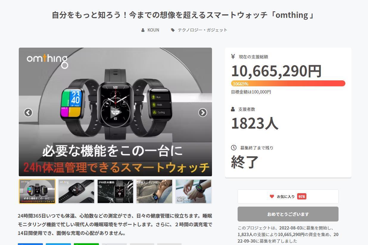 2022/11/25 18:22いつもご支援ありがとうございます。CMAPFIREよりお得に支援が出来るキャンペーンが始まりました!詳しくは下記URLをご覧くださいhttps://pr.camp-fire.jp/2023newyear-cp#pacampこの機会に年末年始から健康管理を始めませんか?皆さんのご参加お待ちしております~宜しければSNSでのシェアもお待ちしております★第二弾!自分をもっと知ろう!想像を超えるスマートウォッチ「omthing 」 もっと見る目標金額達成!omthing スマートウォッチで手軽に健康管理