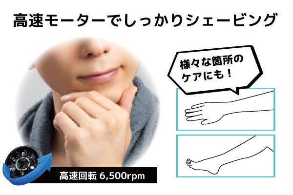 【高速モーター】肌に優しくしっかり剃れる高速モーターを搭載。様々な箇所にもしっかりシェービング。