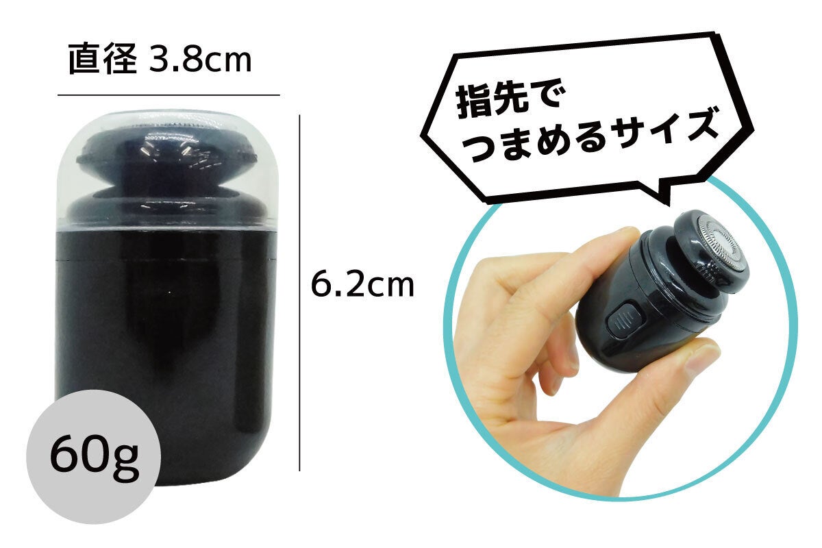 【コンパクトサイズ】指先でつまめる 6.2×φ3.8 cmの小型USBシェーバー。シンプルなデザインで違和感なくご使用頂けます。