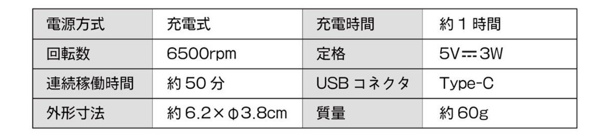 同梱品:USBケーブル、鼻毛用アタッチメント、清掃ブラシ