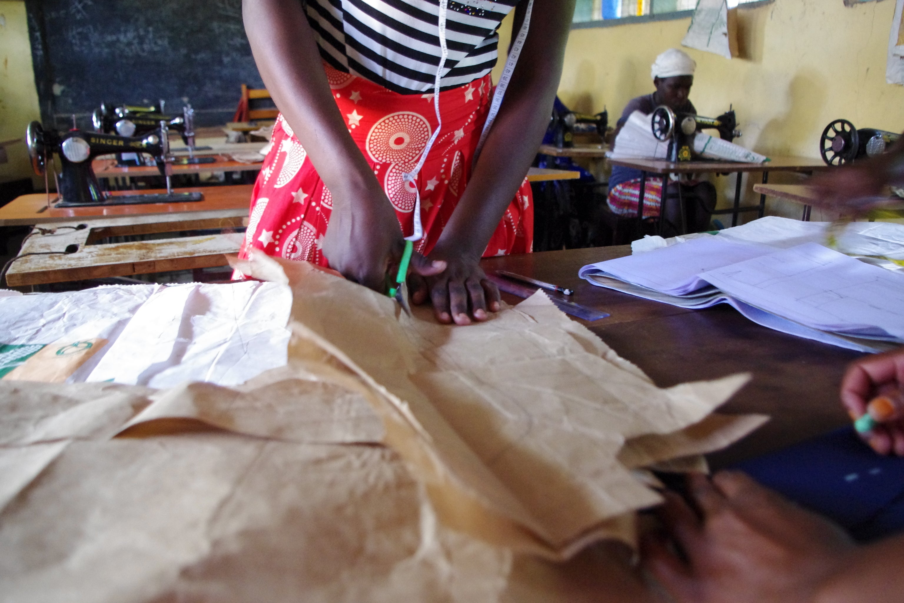 スーパーマン センガさん彼女はバッグブランド代表のアシスタントであり、顧客対応担当、パターンナー、古着マーケットでの素材探しもする、マルチタスクなスーパーマン。2018年にインターンとして参加、いまではセンガ(みんなの叔母さん)と呼ばれ、なくてはならない存在です。とにかくものづくりが好き。良いものをつくり出し、多くの人に楽しんでもらいたい。日本の皆さんにもこの工房で作ったものを使ってもらえることは本当に嬉しい!と語ってくれました。沢山売って儲ける!ではなく、こだわり、良いものだけを無理のない程度に作っていく、と言うスタンスでやっているそうです。ケニアスタッフ トモ