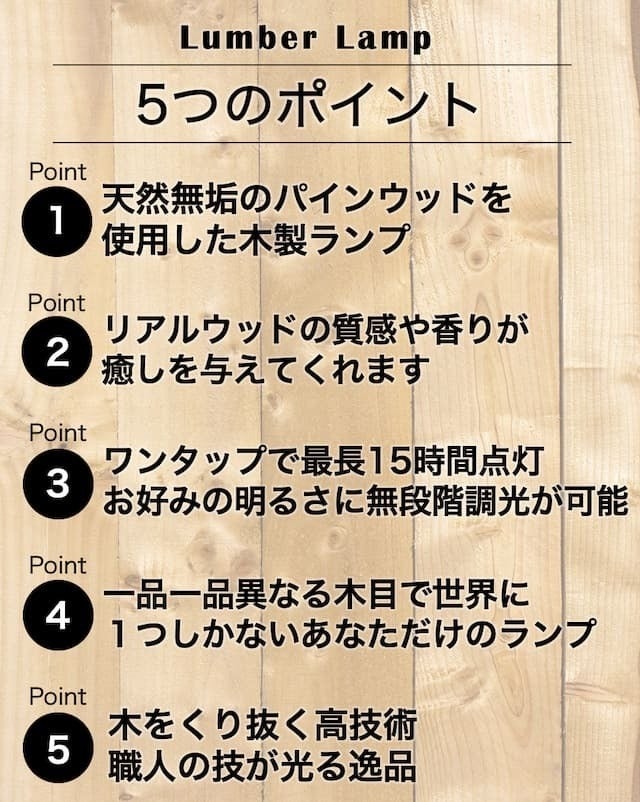 Lumber Lampで是非皆様のお近くに置いて周りをより明るく照らしていただけると嬉しいです。