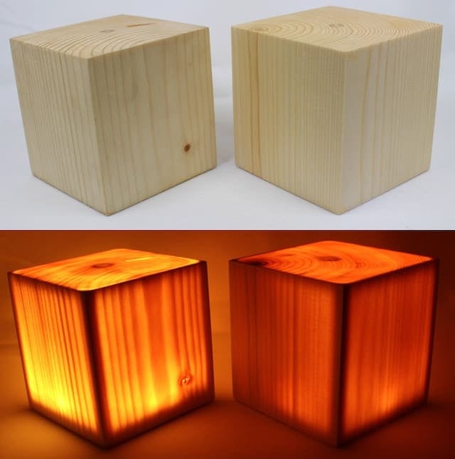明かりを灯すと木目が浮き出て独特の光を放ちます。