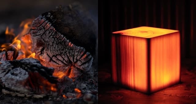 木目と光源が絶妙な化学反応を起こし燃える木炭のような暖かい優しい光を灯し癒しを与えてくれます。