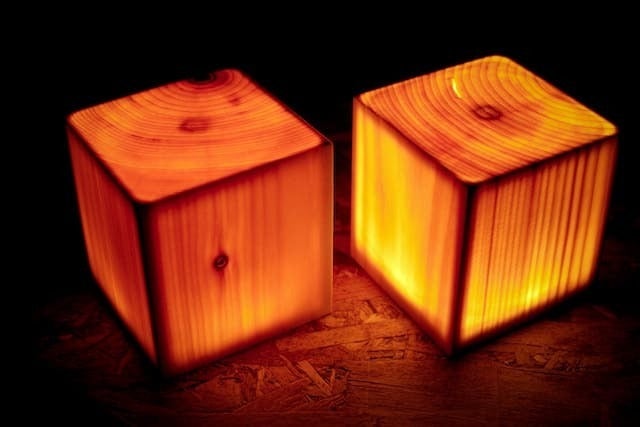 天然ウッドの質感や木のほのかな香りを感じられる無垢のパインウッドを使用したお部屋のワンポイント照明やアウトドアなどでも使用できる木製ランプを製作しました!