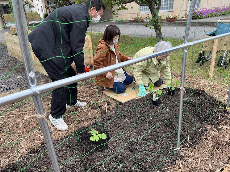 第一回のワークショップのこと。リハビリファームに、ご夫婦でお母さんを連れて来ておられていました。「お母さん、ここに穴を掘って、苗をいれて」と一生懸命に声をかけて、作業を促されているご様子が見えたので、お話を聞くと「実は認知症で全部忘れてしまっているんです。畑をするのが上手な人だったから、畑に来て作業をさせてあげたら、昔のことを少しでも思い出すかなー。思い出してくれたらいいなーと思って連れてきたんです。」と話して下さいました。
