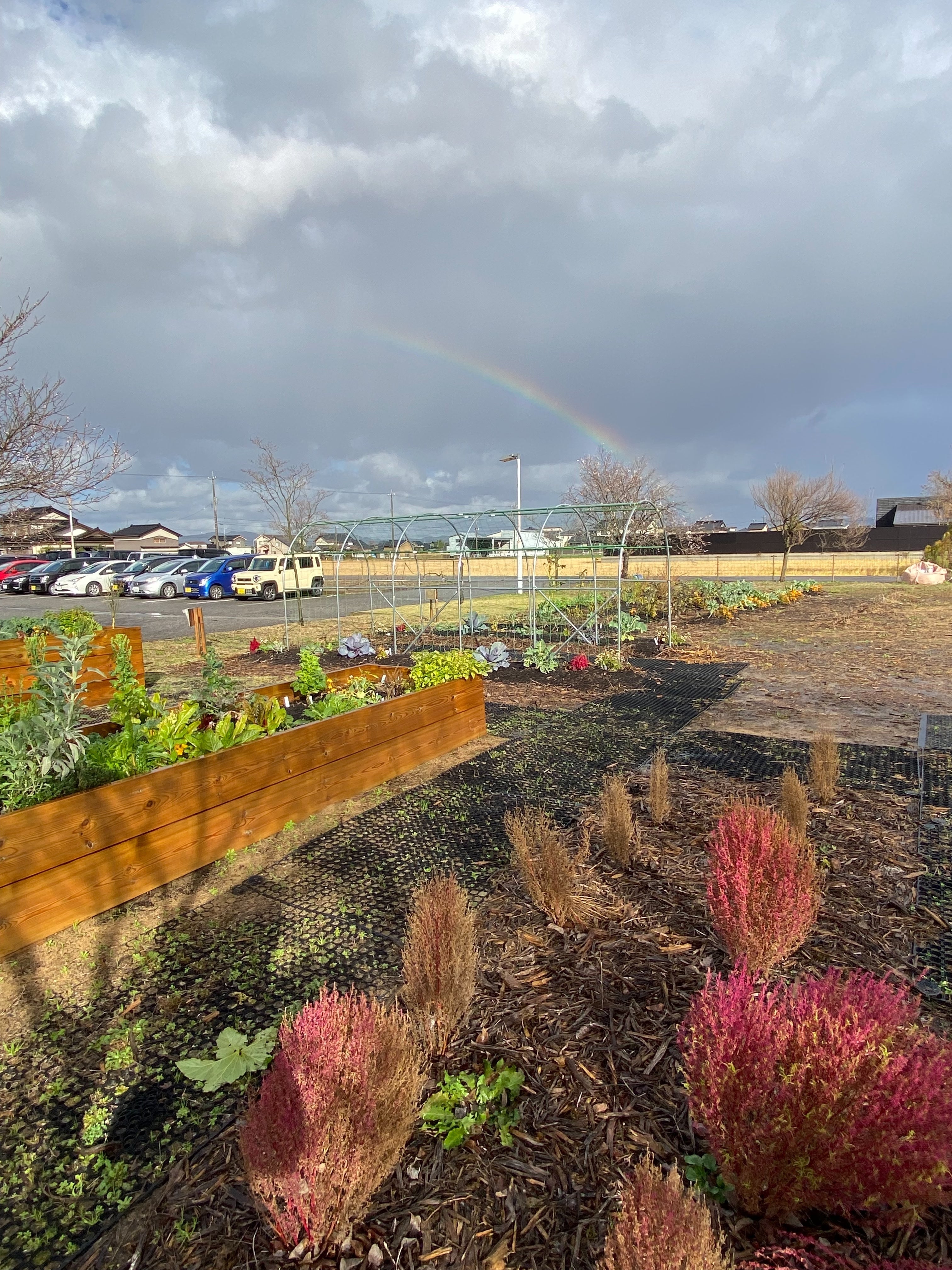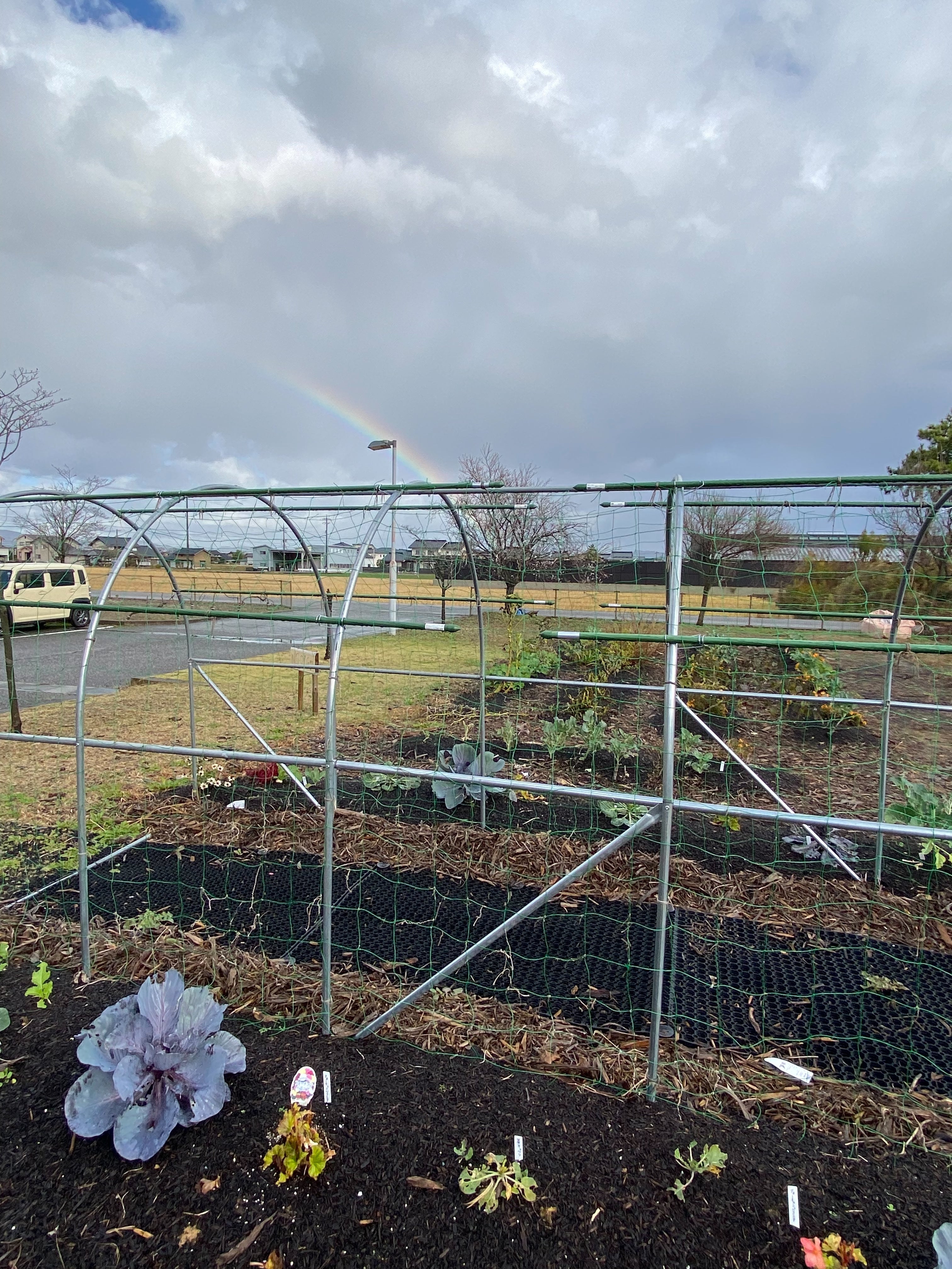 先日、雨上がりのリハビリファームに大きな虹がかかっていました。