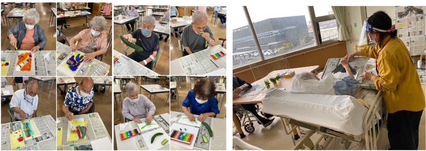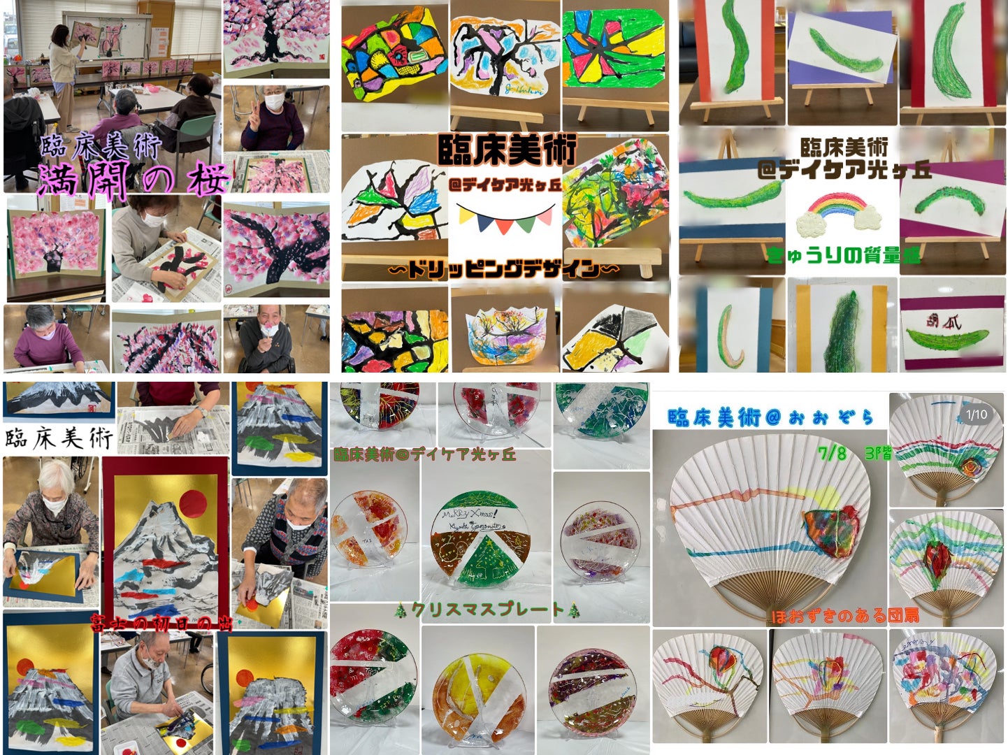 「臨床美術」を行っており、利用者さん達は、片麻痺などの障がいがあっても素晴らしい作品を制作しています。
