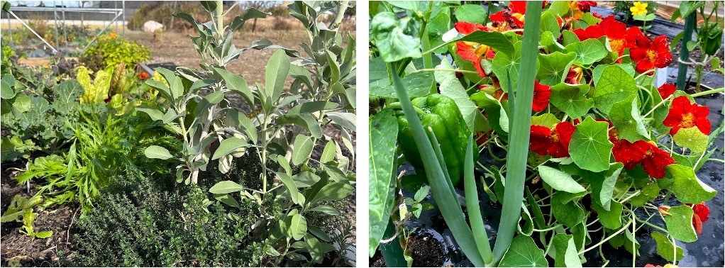 そんな特性を利用して、近くに栽培することで、互いの成長によい影響を与えたり、病害虫を抑えたり生長を助けるという良い影響が出て、共栄しあうと言われている植物の組み合わせをリハビリファームでは、活用しています。