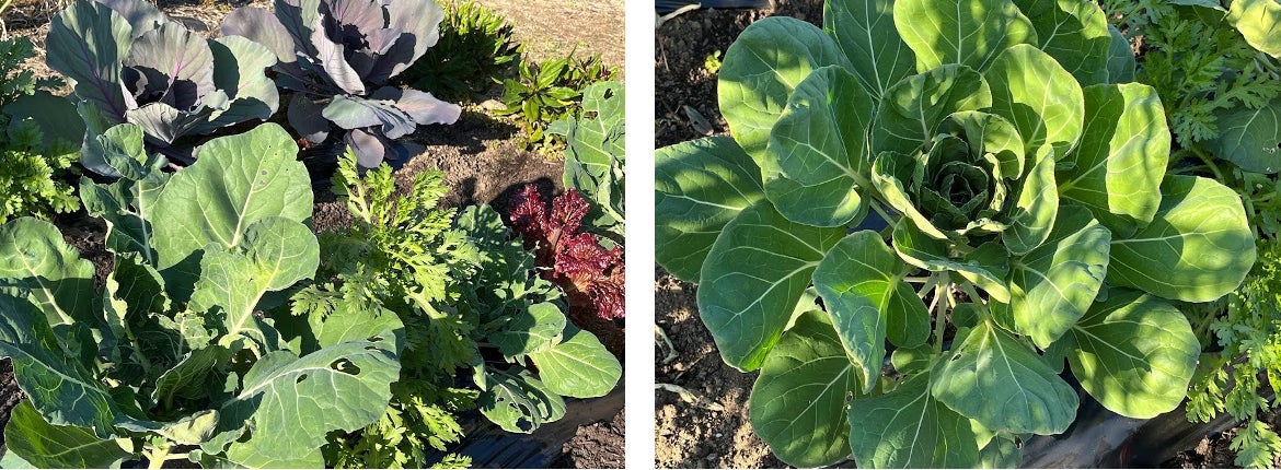 秋冬野菜にはアブラナ科の野菜の種や苗を植えました。ブロッコリー、芽キャベツ、キャベツ、カリフラワー、ケール、コールラビ、カブ、ハクサイなどがアブラナ科です。