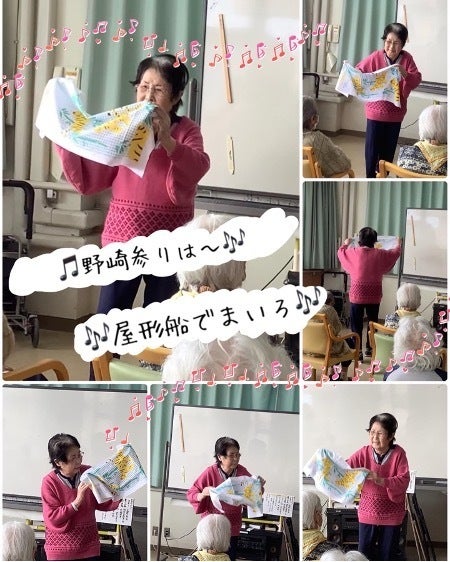 普段は口数も少ない方であったそうですが、大変感動され、手ぬぐいを持ってきてと職員に伝え、みんなの前で昔踊っていた踊りを杖も使わずに歌いながら披露して下さいました。