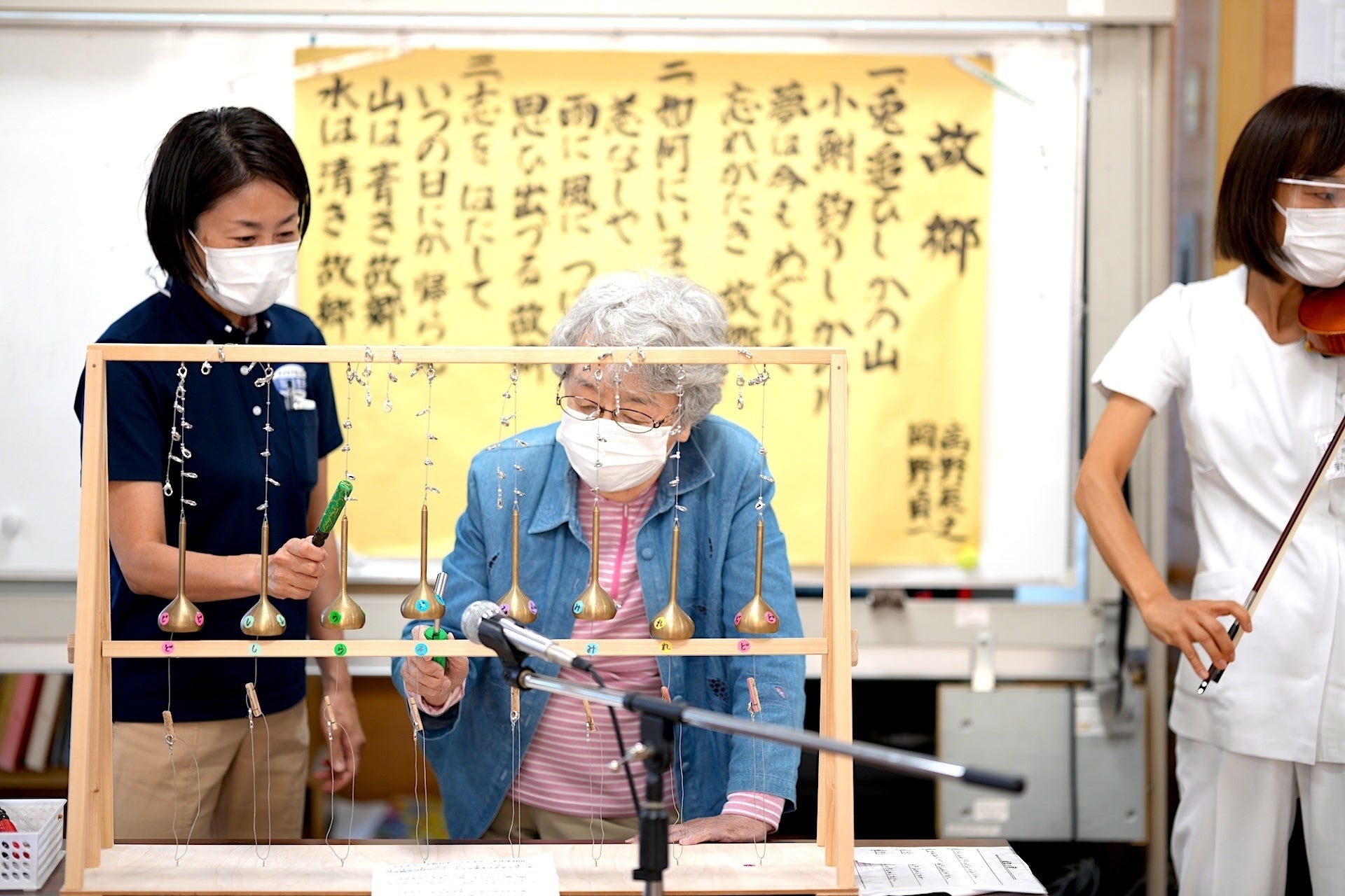 今では、「故郷」など、定番の曲に、毎回いろんな患者さんが「能作の鐘」にチャレンジしてくださっています。何歳になっても新しいことにチャレンジすること、楽器演奏なども認知症予防になるとも言われています。