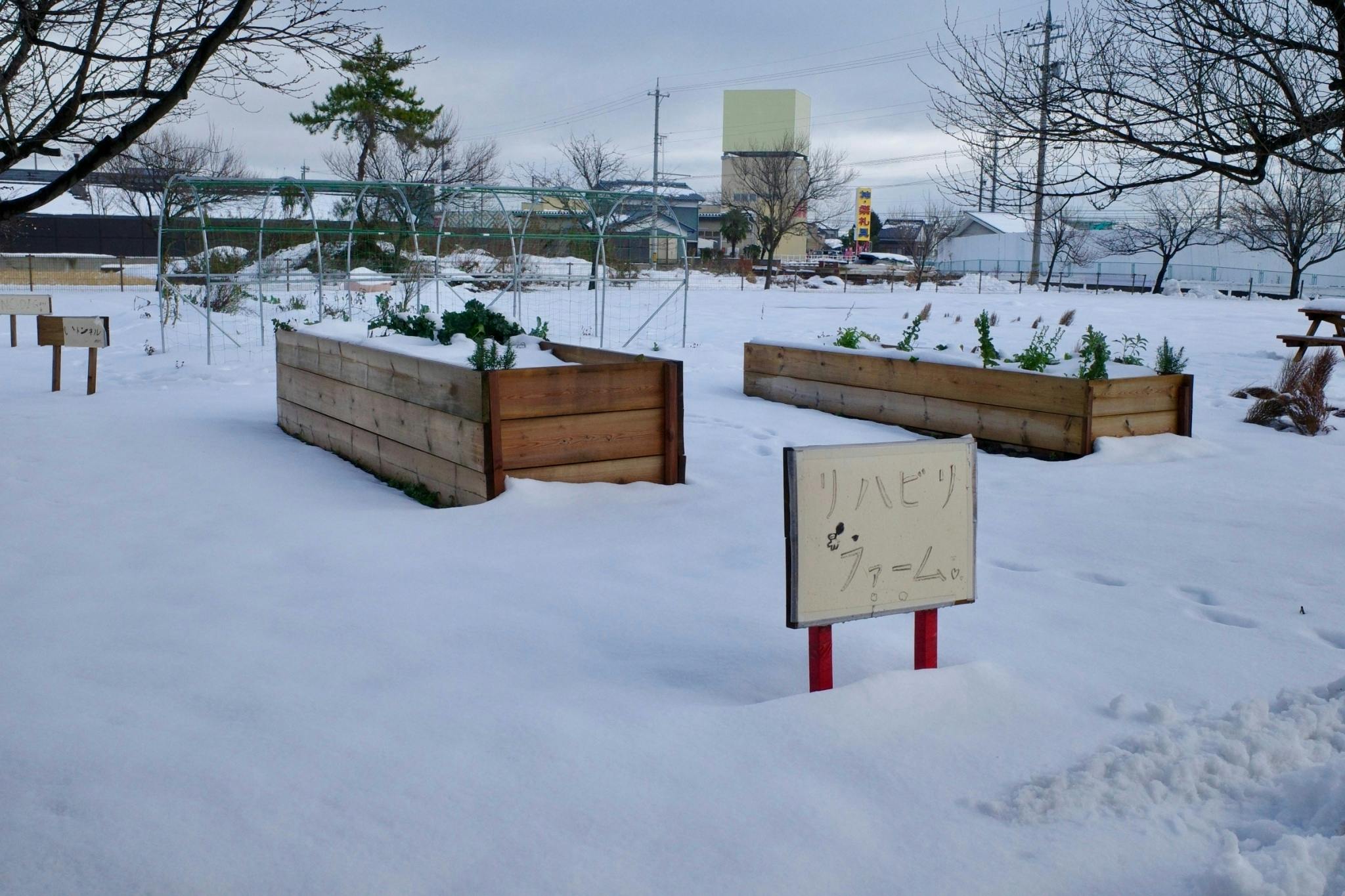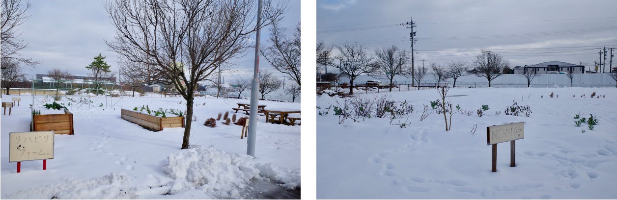 リハビリファームにとっては、初めての雪。この冬を越したら、明るい春が待っています。
