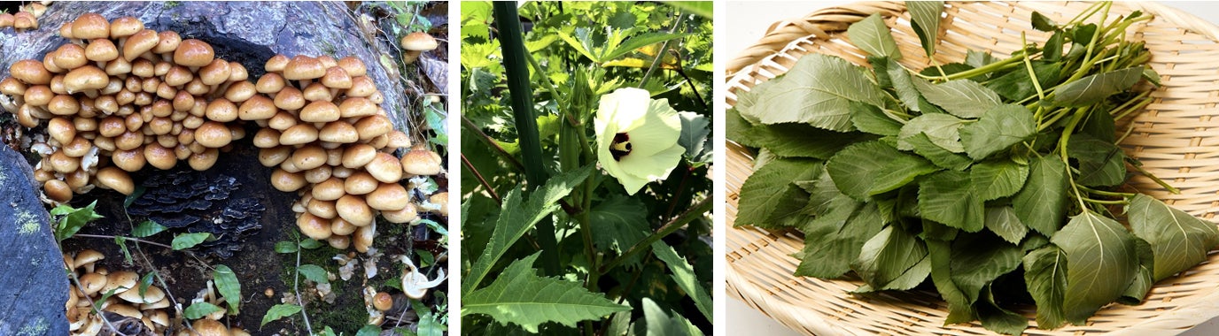 食物繊維を多いリンゴやごぼう、きのこ類、海藻類。オクラやモロヘイヤ、明日葉、つるむらさき、長いもなど、ネバネバ食材。