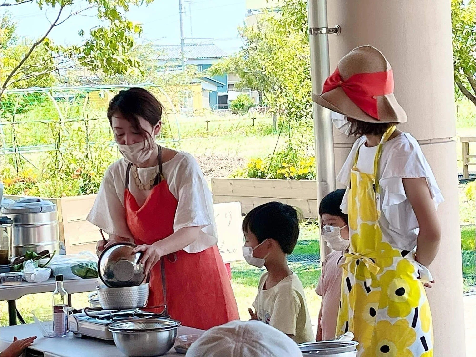 畑では、デトックス効果のある野菜を作っています。オクラやモロヘイヤ長いもなど、ネバネバ食材を使った青空クッキングも開催しました。