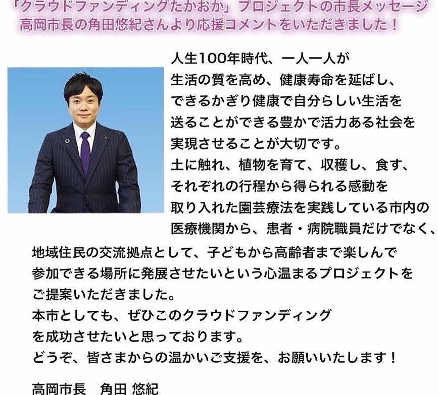 ・病院にリハビリファームを創られる想いに心から共感しています。微力ながら応援させていただきます!