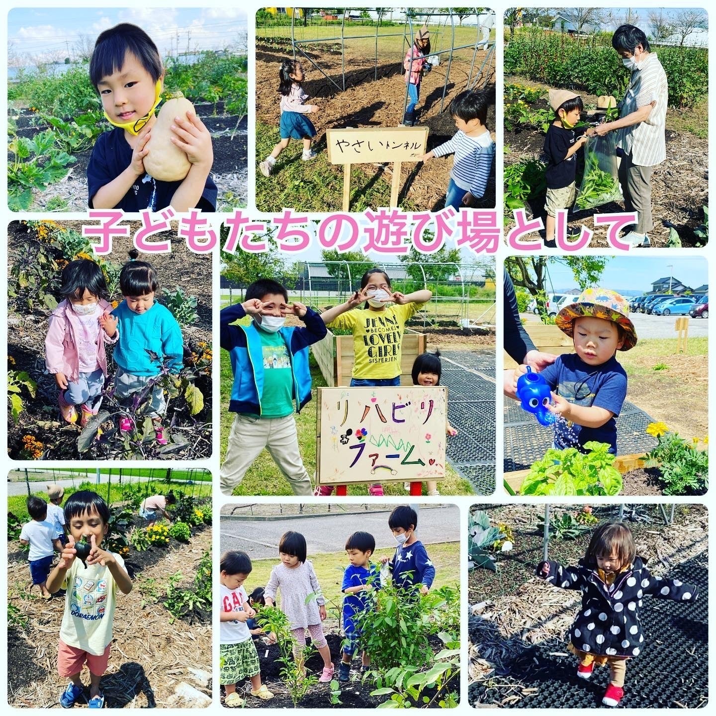 ・植えてある野菜や花の色や形を見たり、匂いを嗅いだり、触ってみたり、風の音を感じたり、味見をしたり、、、など五感を刺激して、色々な発見したり学んだりする場所として