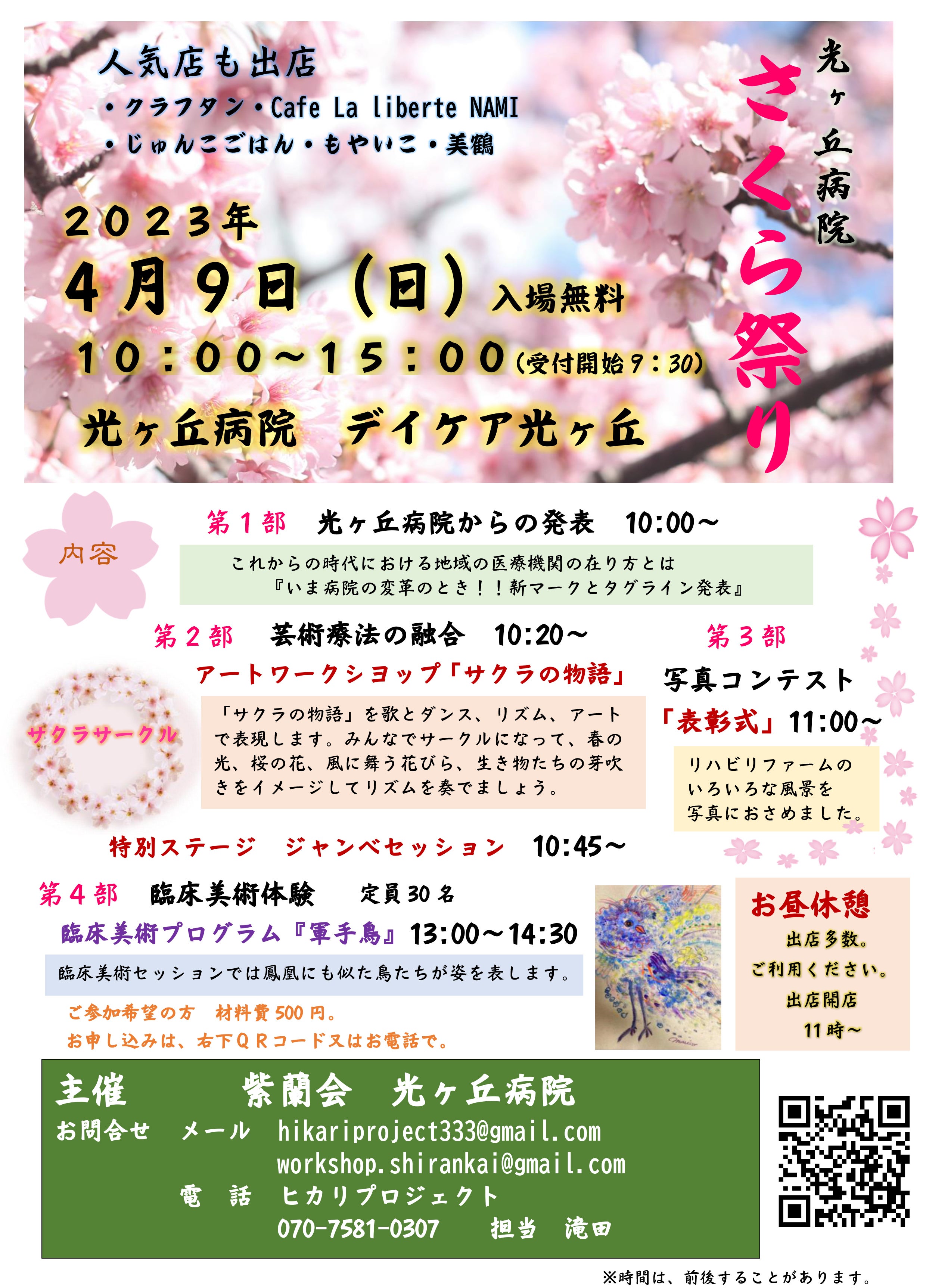 そして、今度の4月9日(日)には「光ヶ丘病院 さくら祭り」が行われます。