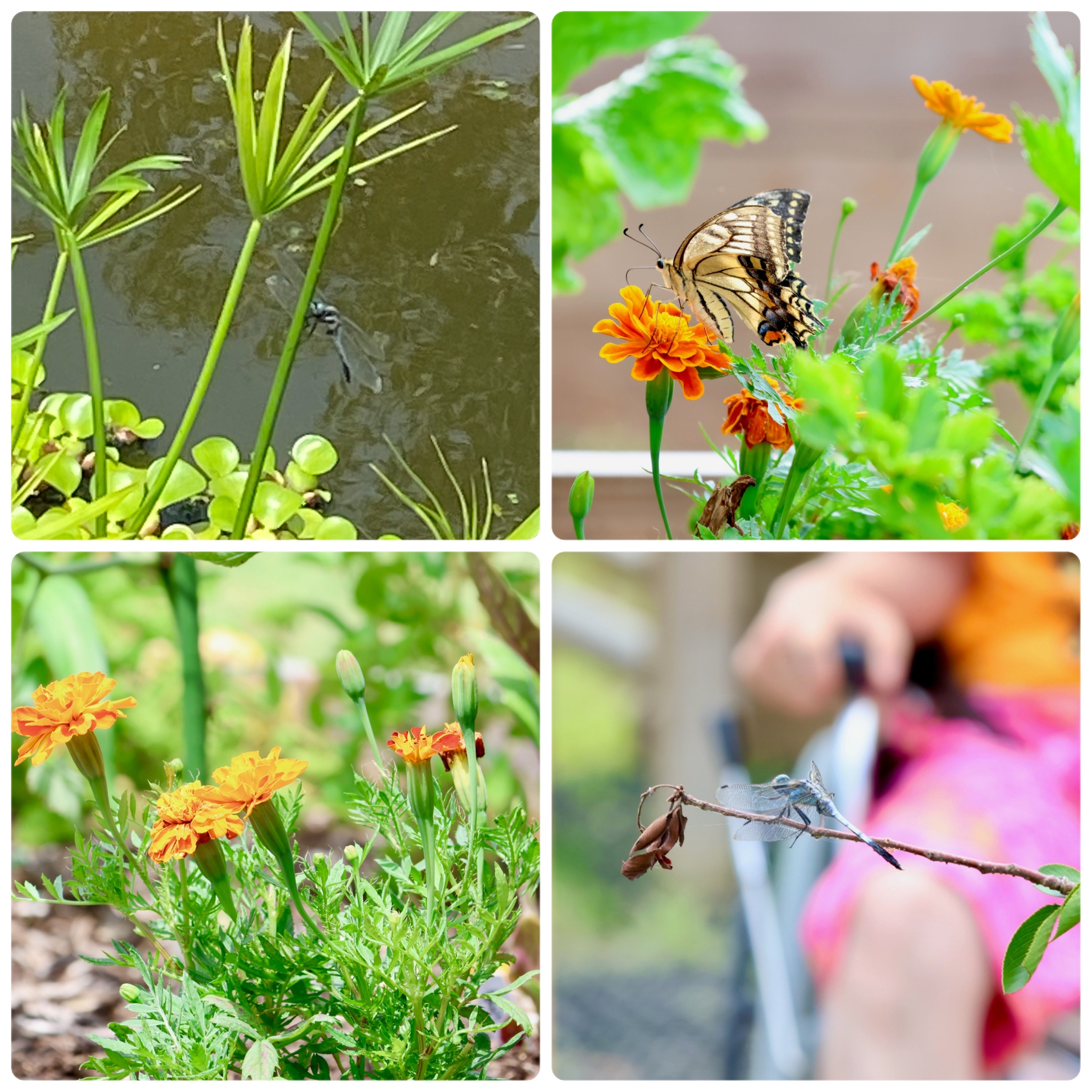 泳いている魚達を見ると癒されます。ビオトープはできてからまだ3ヶ月くらいですが、5月に放しためだかや金魚がたくさん増え、多くの多彩な生き物が住んでいて、リハビリファームを守ってくれています。