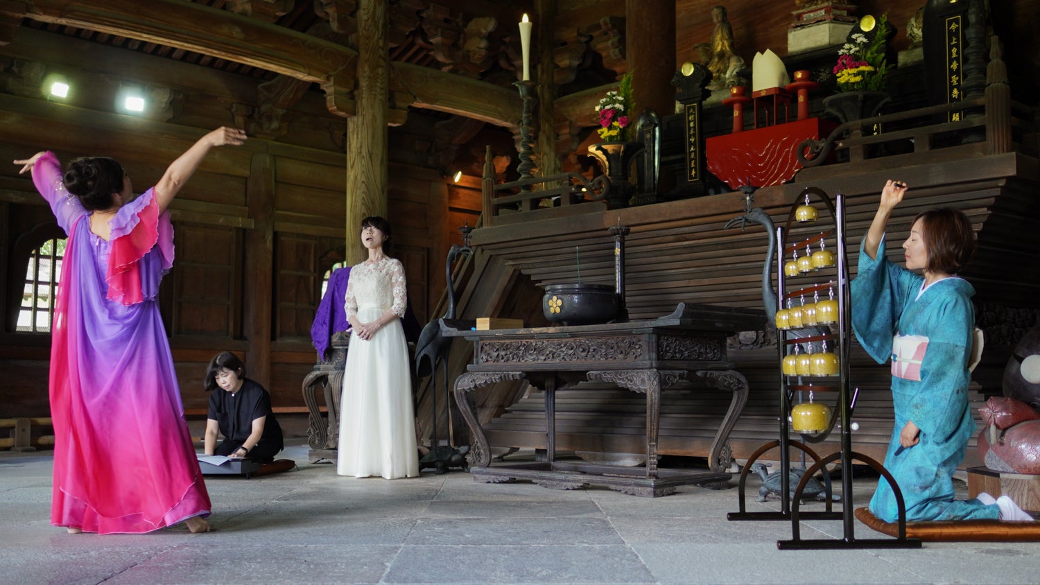 開催に先駆け、仏殿で奉納舞踊。31世瑞龍寺住職 四津谷道宏様のお立ち会いのもと、「天女」を披露させていただきました。