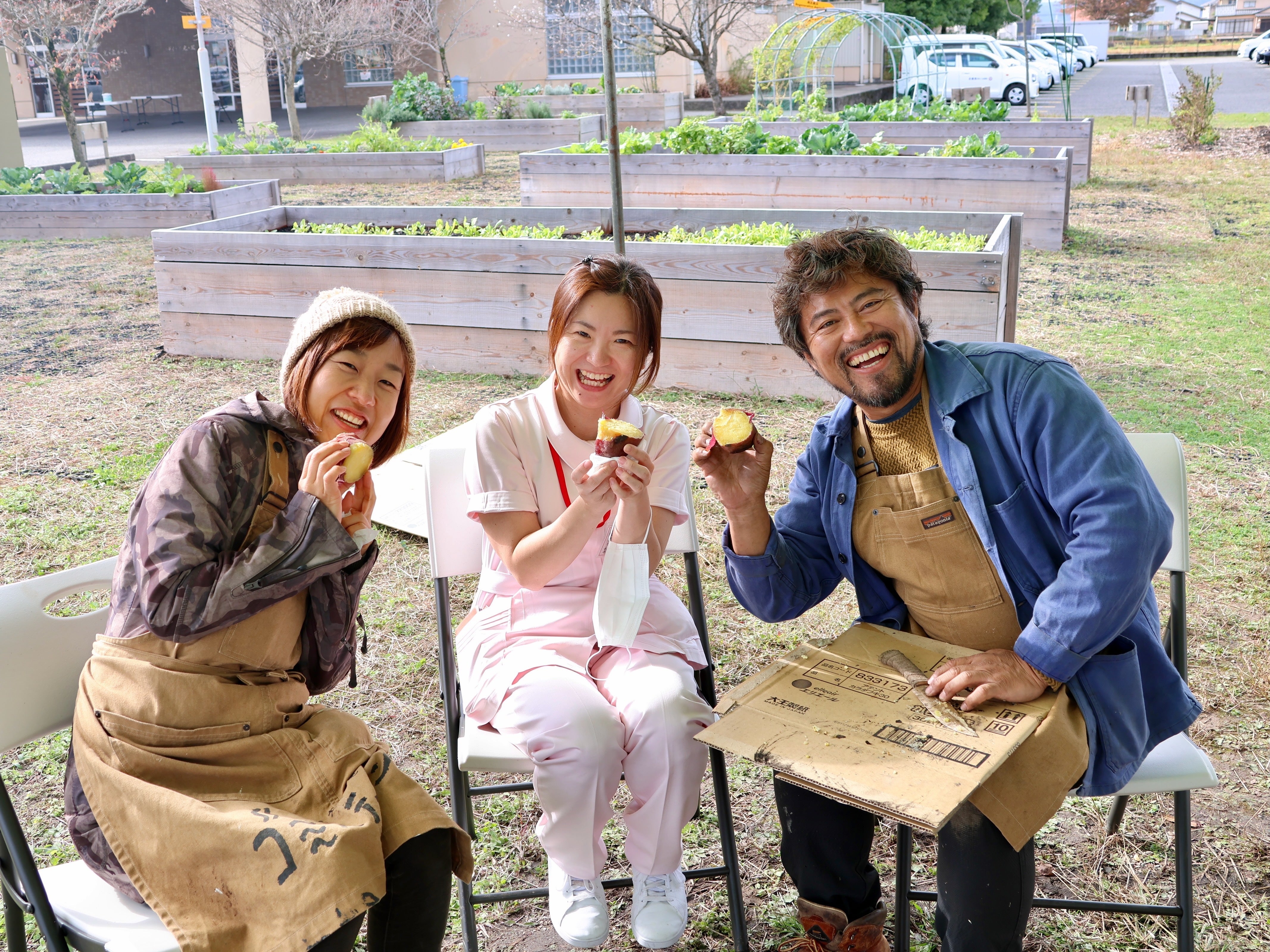 いらしてくださった方にリハビリファームをご案内したり、焚き火で作った焼き芋を振る舞ったりして、たくさんの方にリハビリファームの魅力を知っていただく機会となりました。