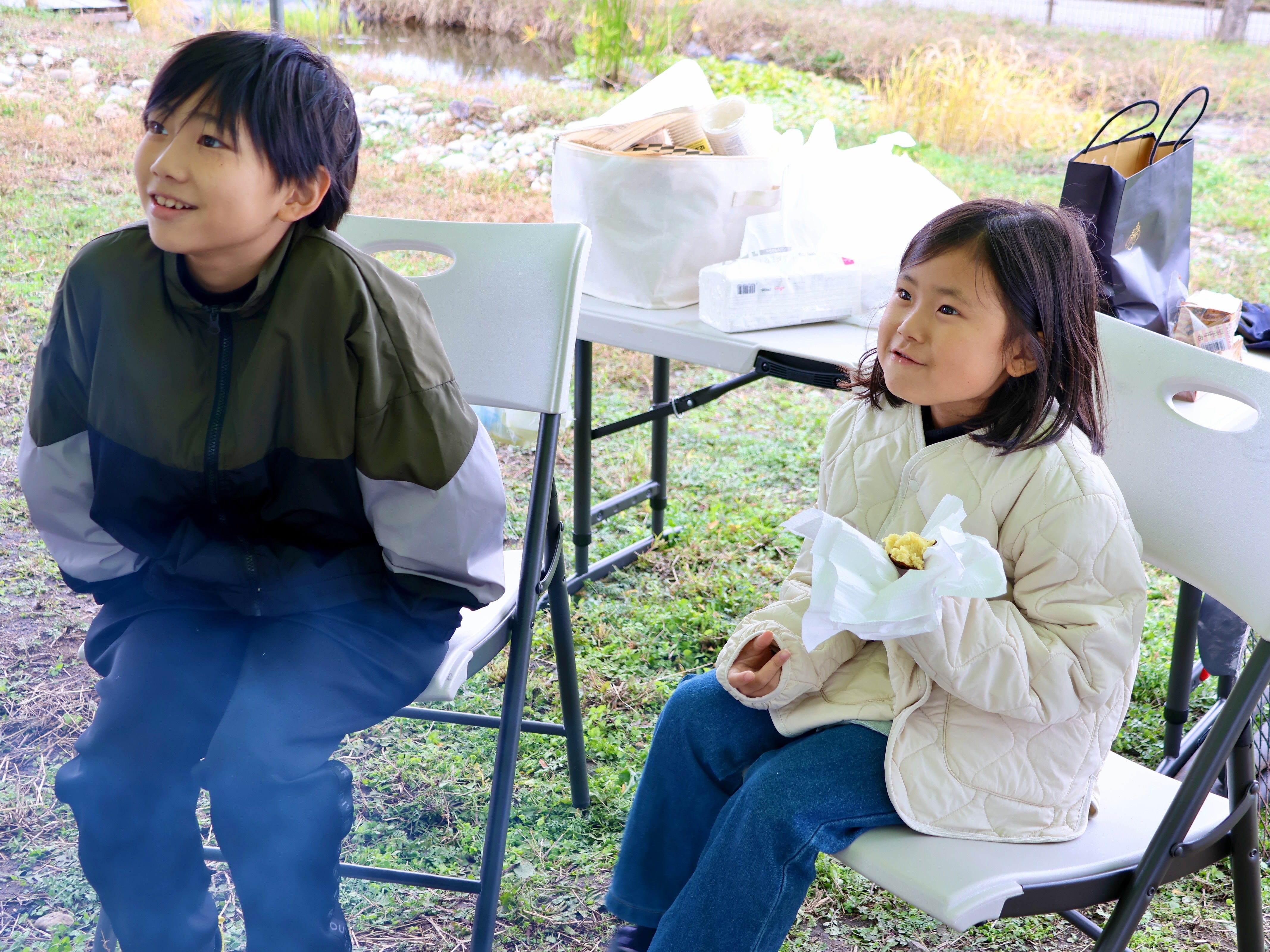 参加者の皆さんみんなで焚き火を囲んで、輪になってみんなで焼き芋をワイワイ食べました。みんながつながる居心地の良い居場所となるという、ひかりプロジェクトのコンセプトを感じられる時間になったと思います。ご参加いただいたみなさん、ありがとうございました!