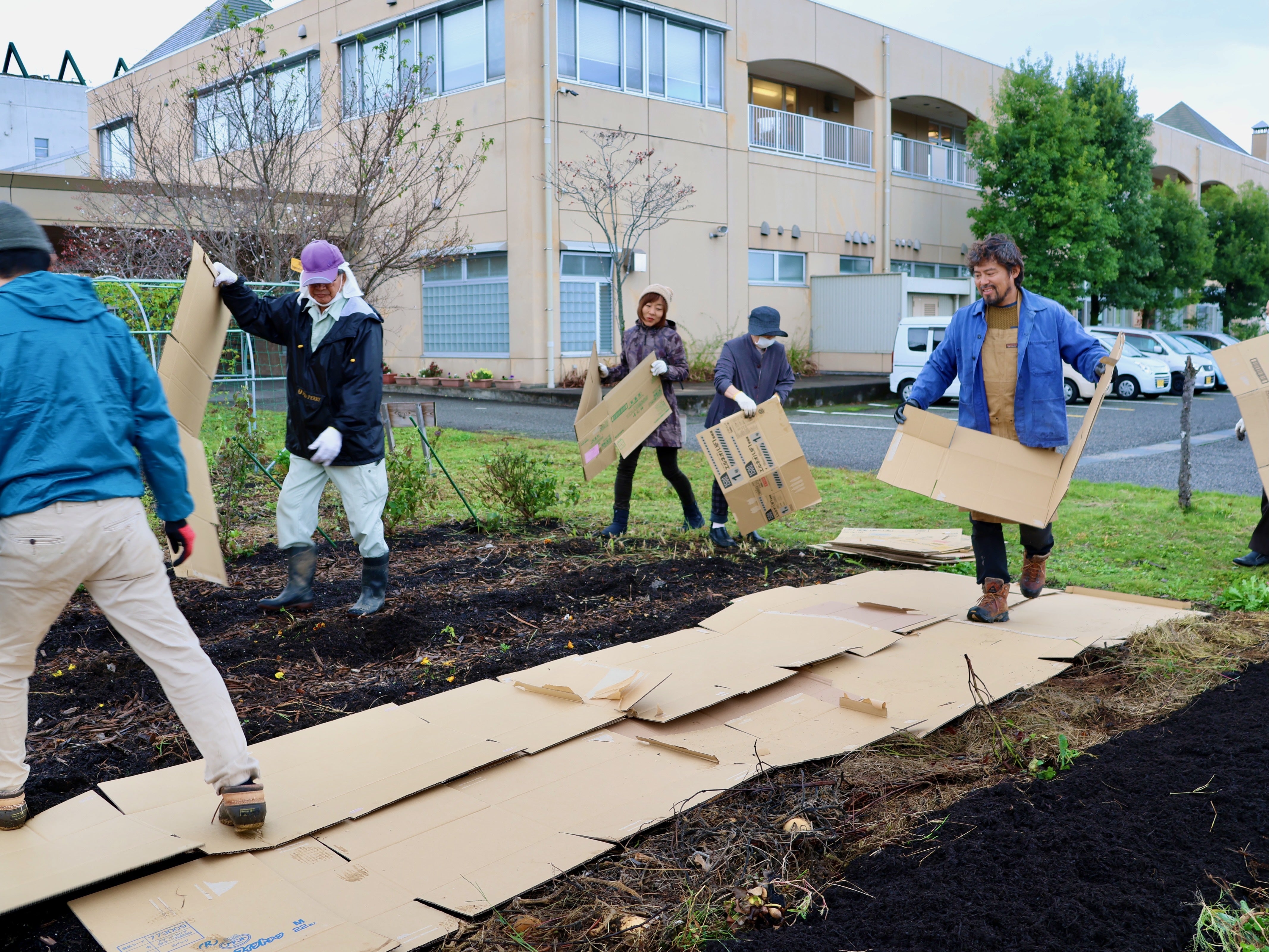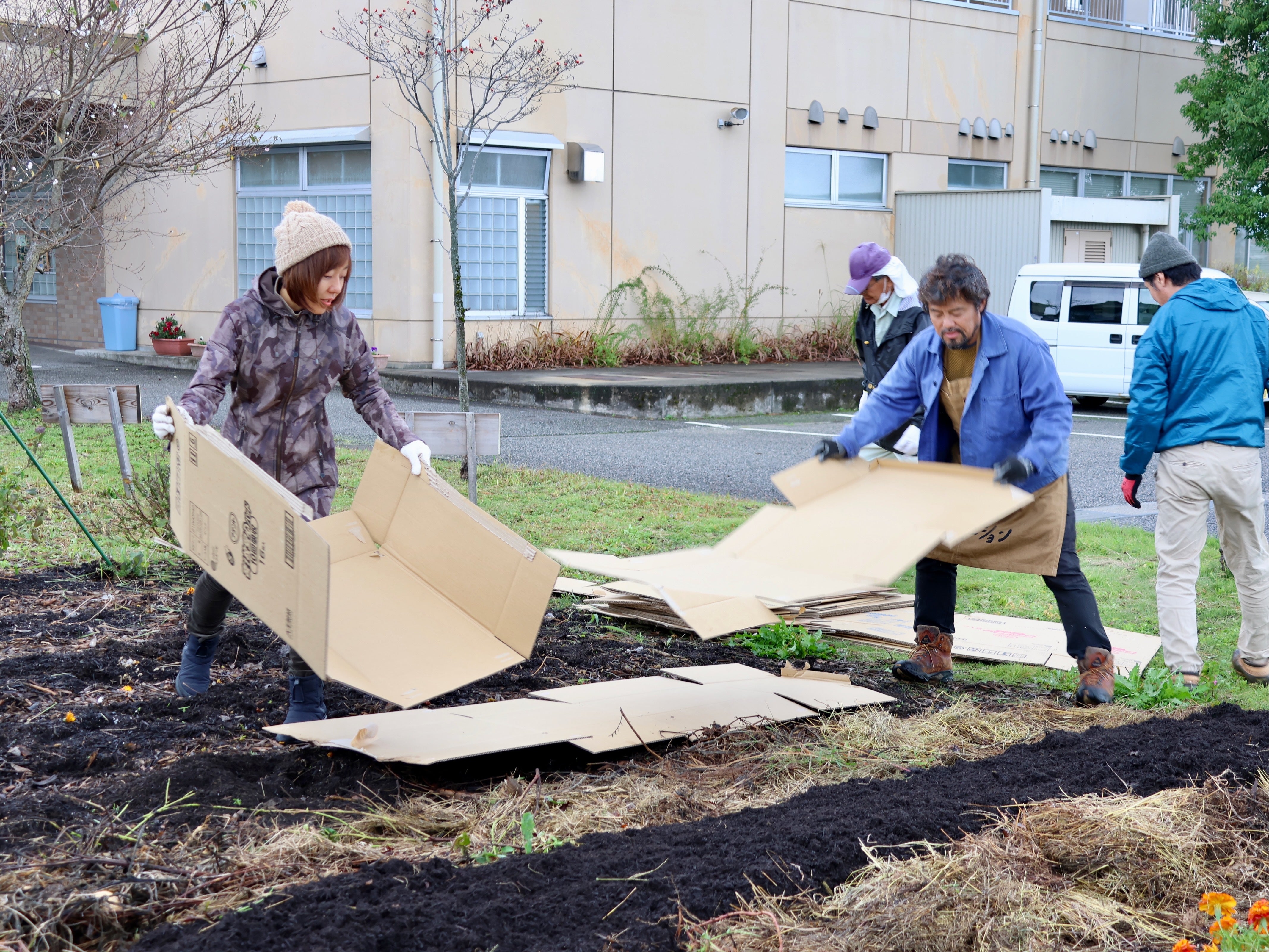 今回で病院でたダンボールを敷くのは、3回目。以前のダンボールはすでに土に返っています。