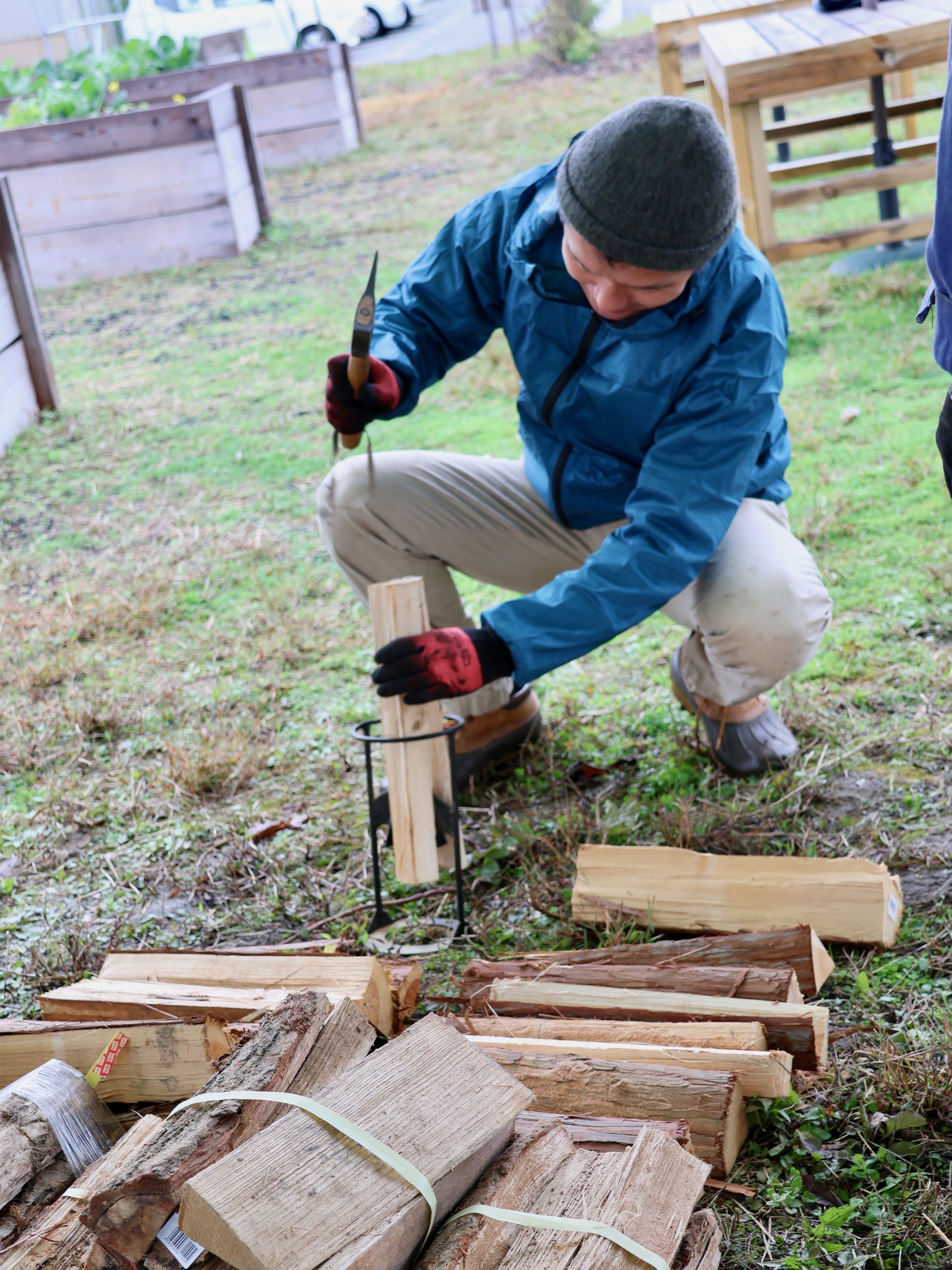 薪を切るのはなかなかコツが要ります。ヒロさんが簡単そうに行うので、やってみたらなかなか難しかったです(笑)