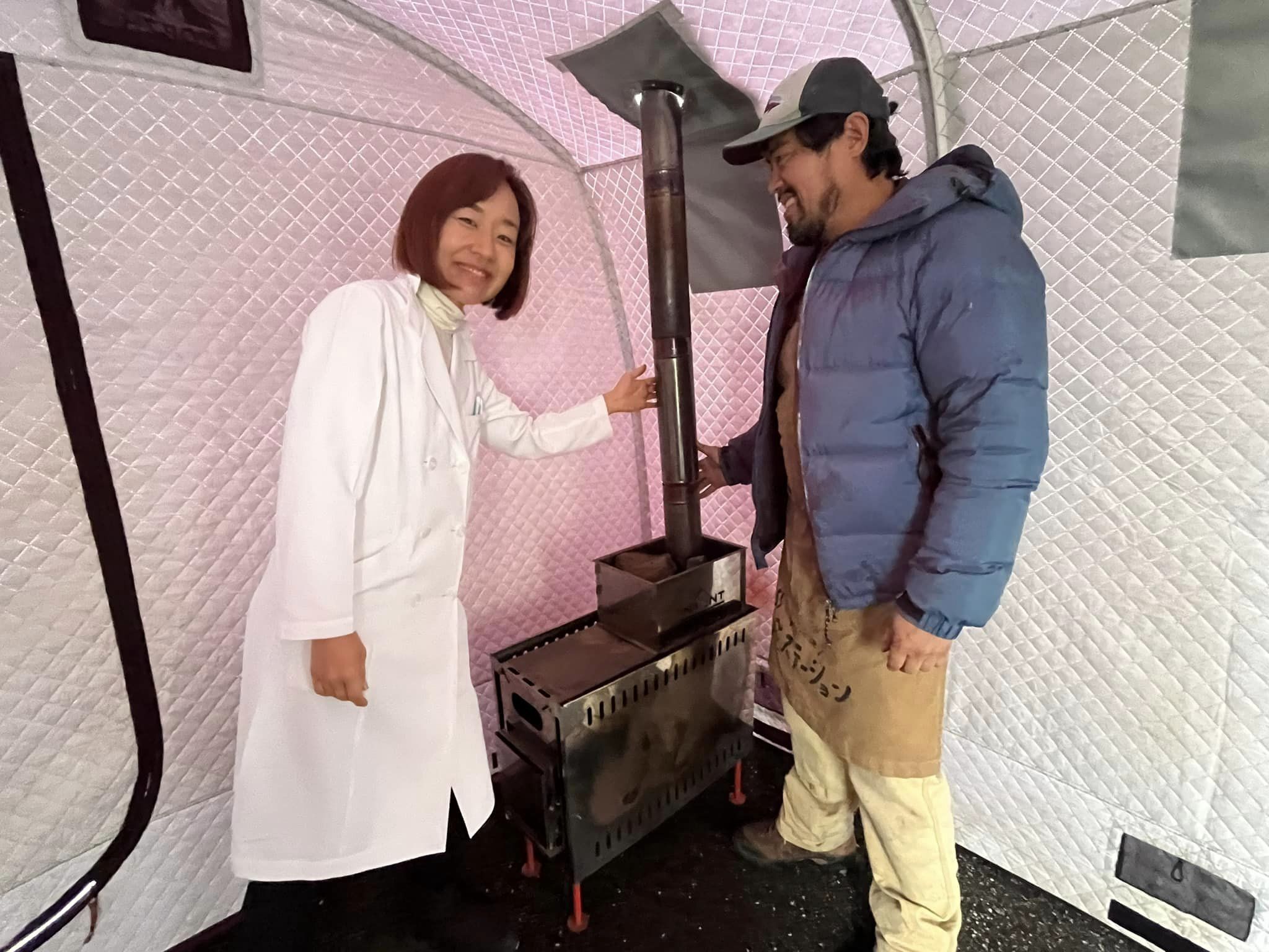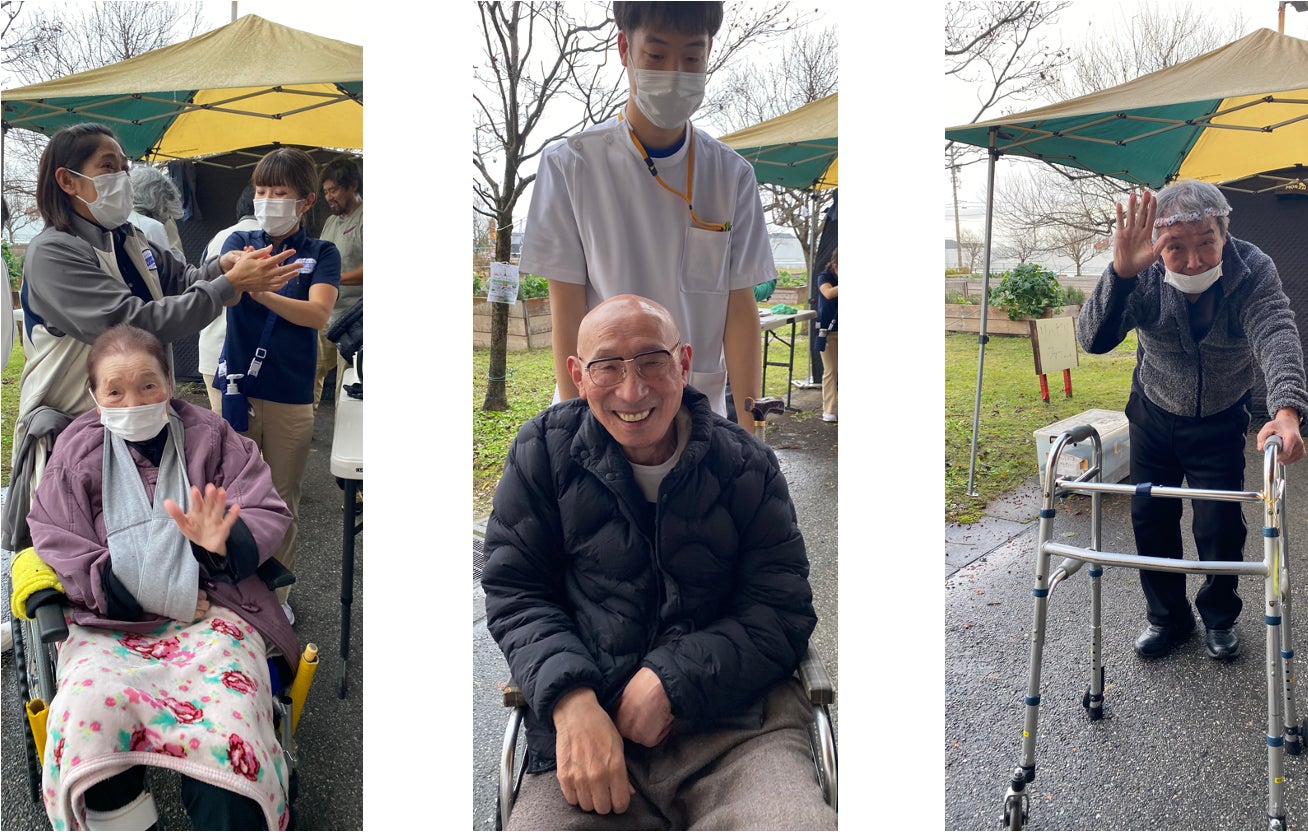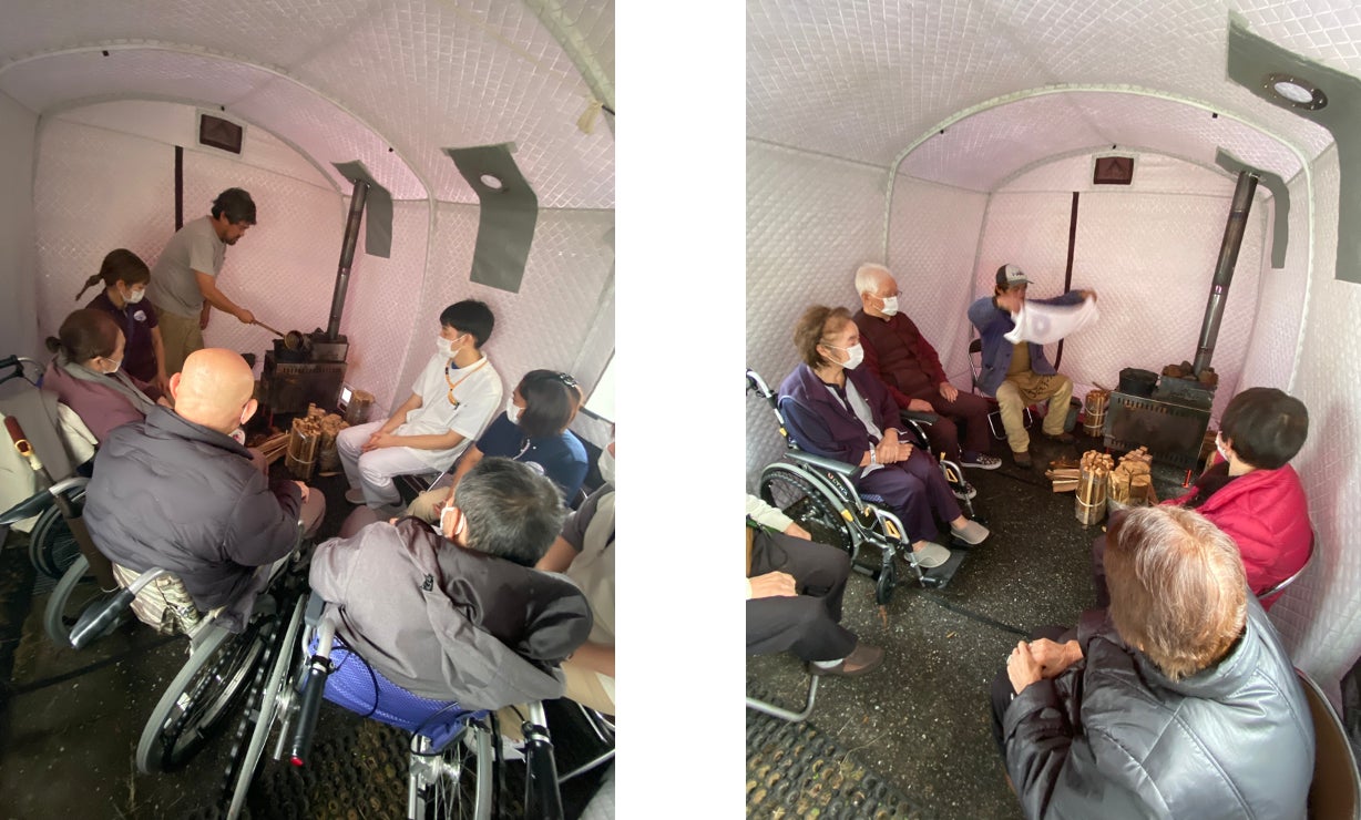 車椅子でも、杖でも、歩行器でも、白衣のままでも、患者さんも職員も、地域の皆様も、みんなで一緒にテントサウナ体験。みんなで一緒に暖まりました。