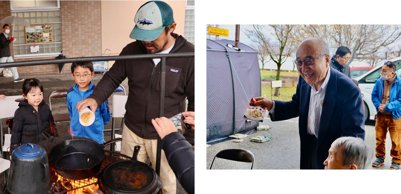 焚き火で作ったポップコーンも振る舞われ、子供たちにも大人気でした!