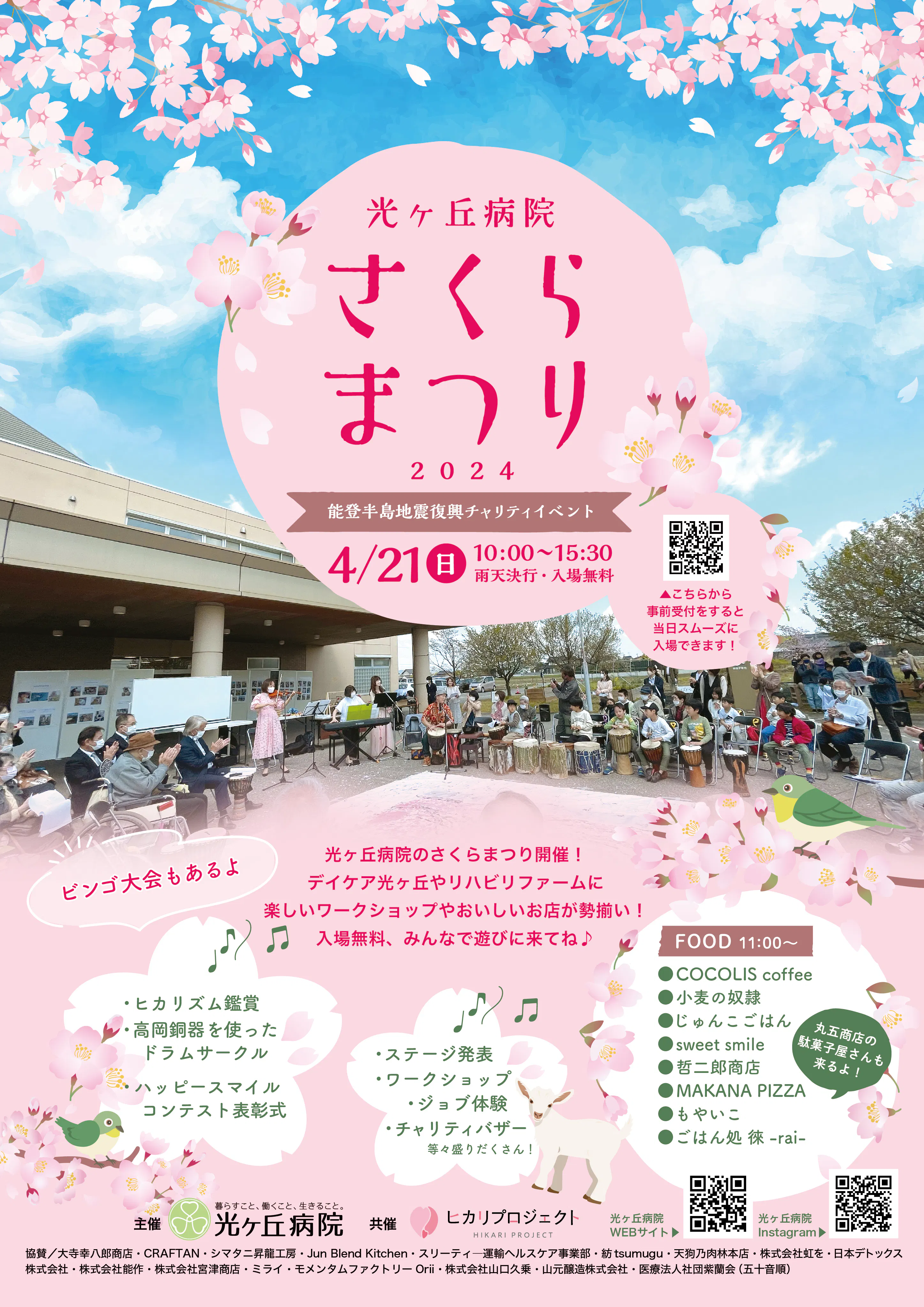 光ヶ丘病院では、2024年4月21日(日)に、令和6年能登半島地震のチャリティイベントとして、「光ヶ丘病院さくらまつり」を開催します