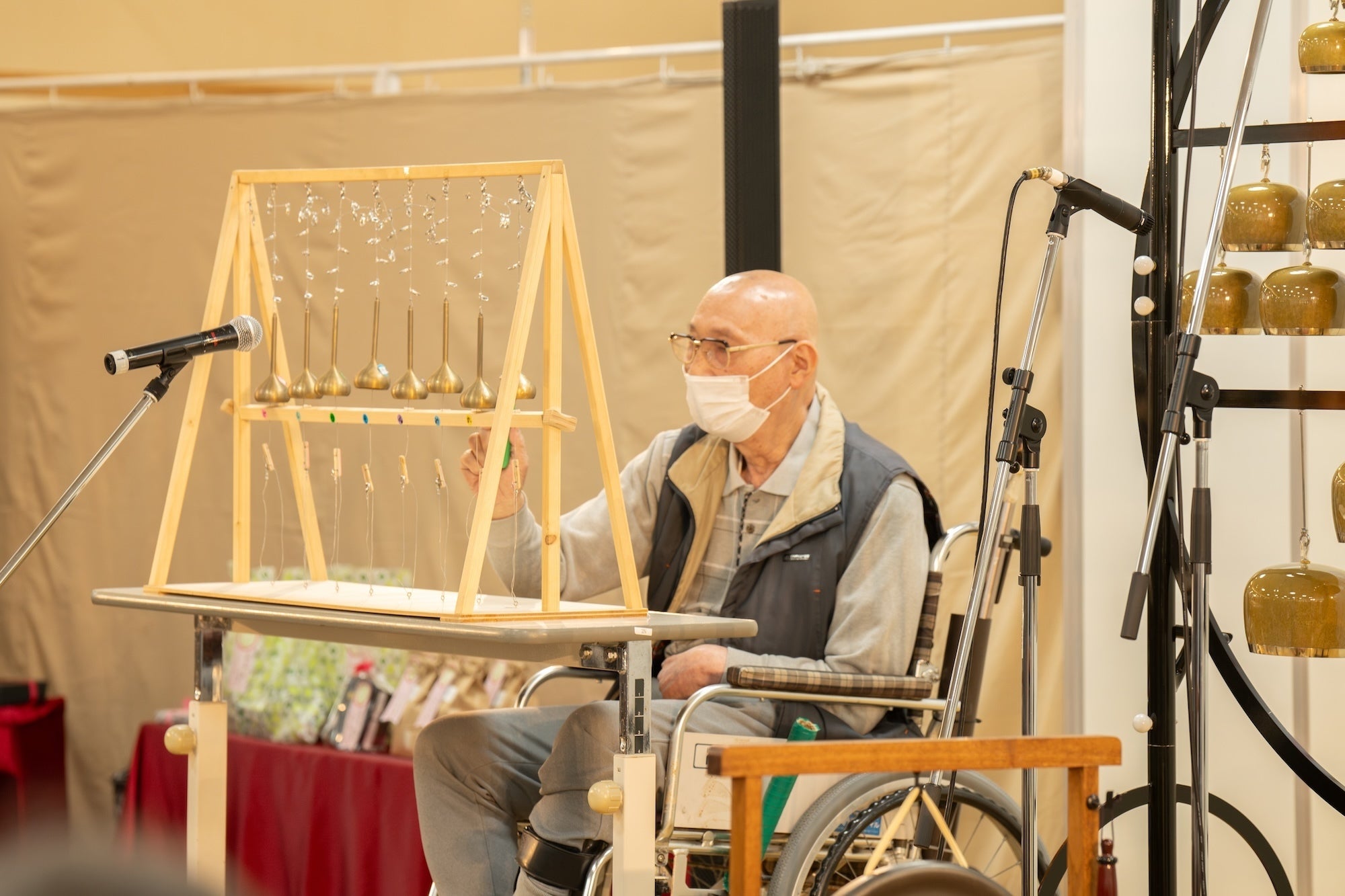 デイケア光ヶ丘利用者による「能作の鐘」の演奏 「春の小川」