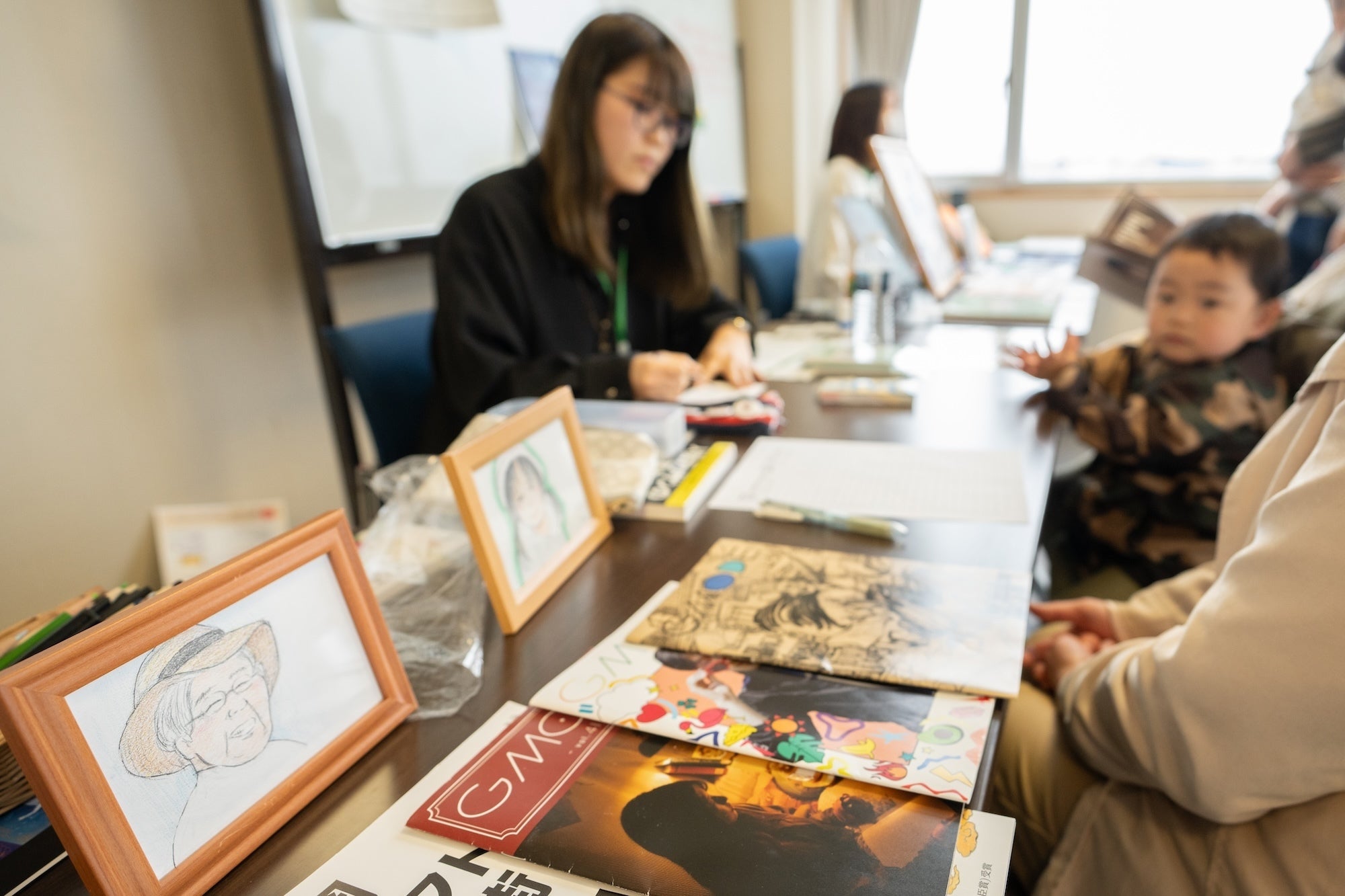 似顔絵体験ブース (by富山大学芸文学部学生)