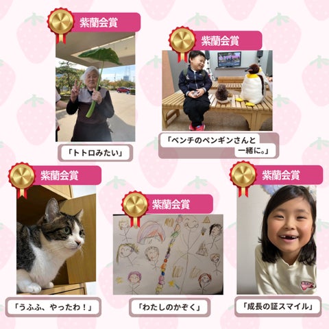 紫蘭会のことを知ってもらい、高岡を発信するために始まった誰でも参加できるコンテスト。2021年「紫蘭会マークアレンジコンテスト」、2022年「リハビリファーム・写真コンテスト」に続き、今年は笑顔のハッピーシェアをテーマに「ハッピー・スマイル・コンテスト」を行いました。