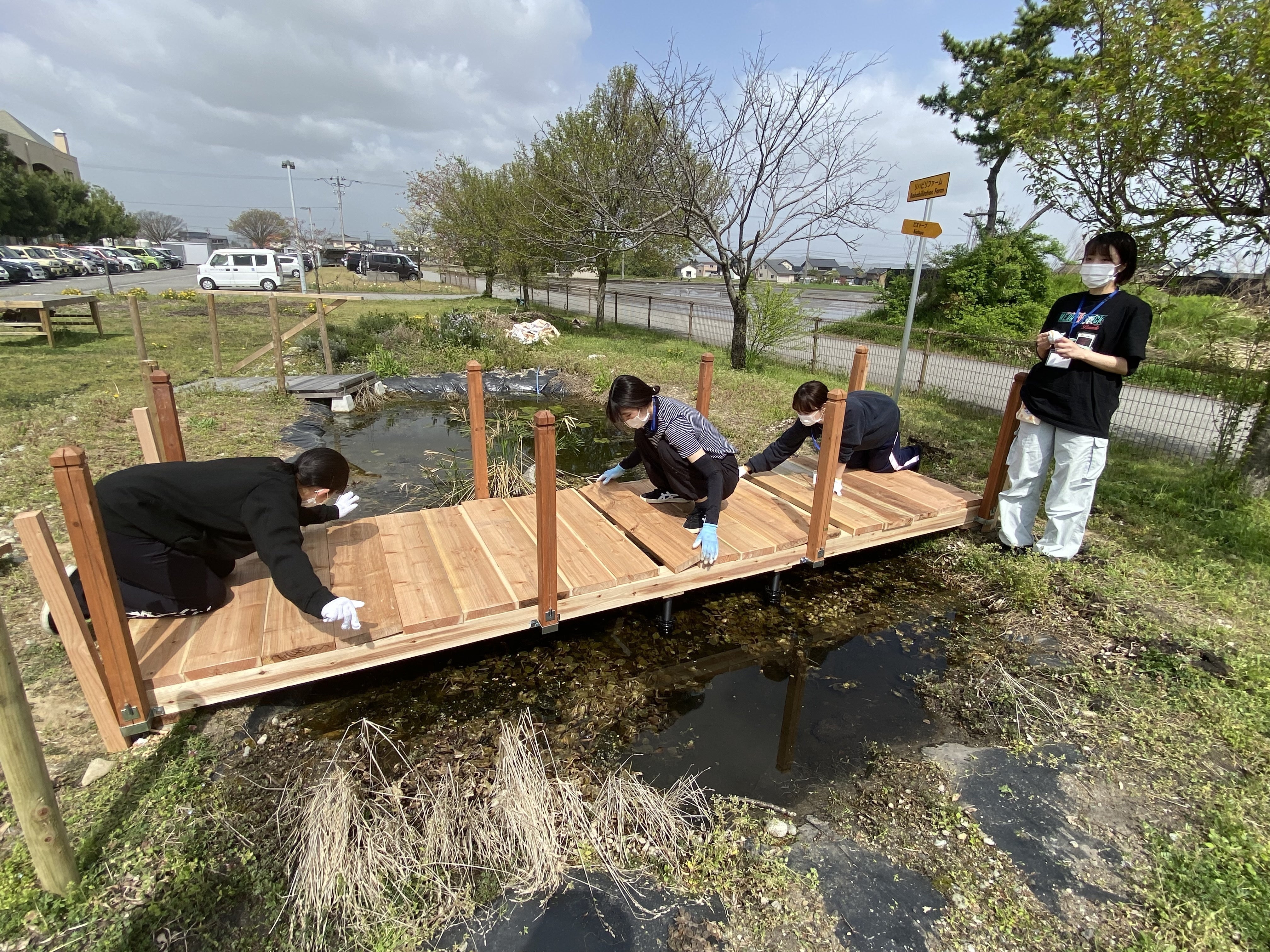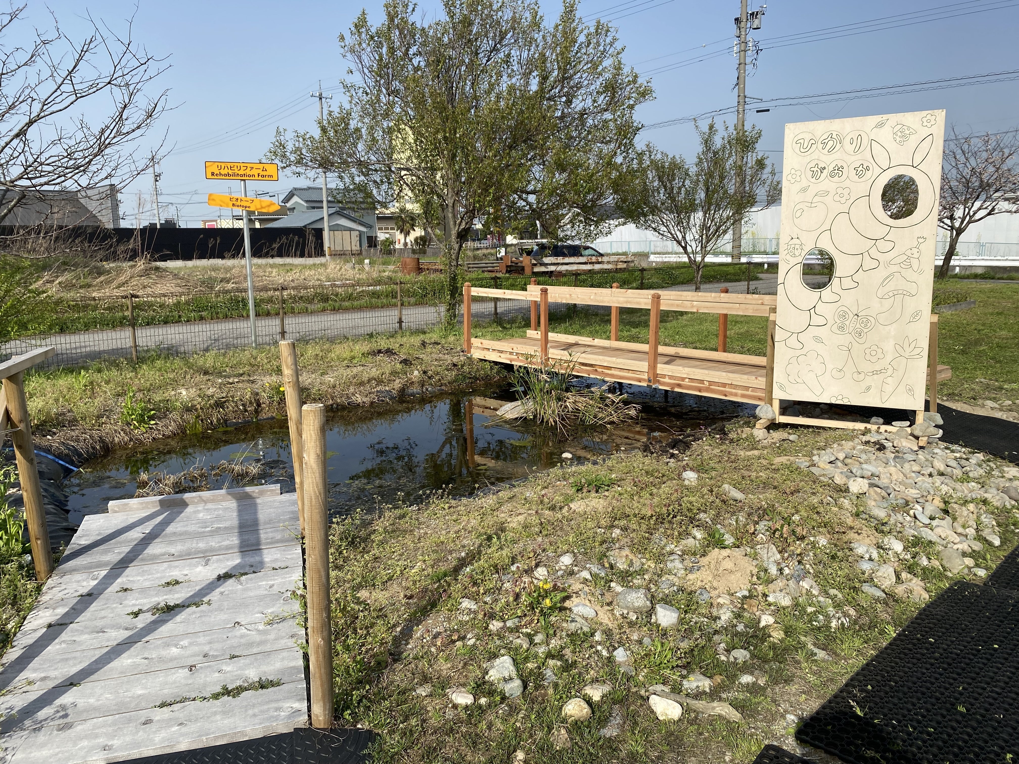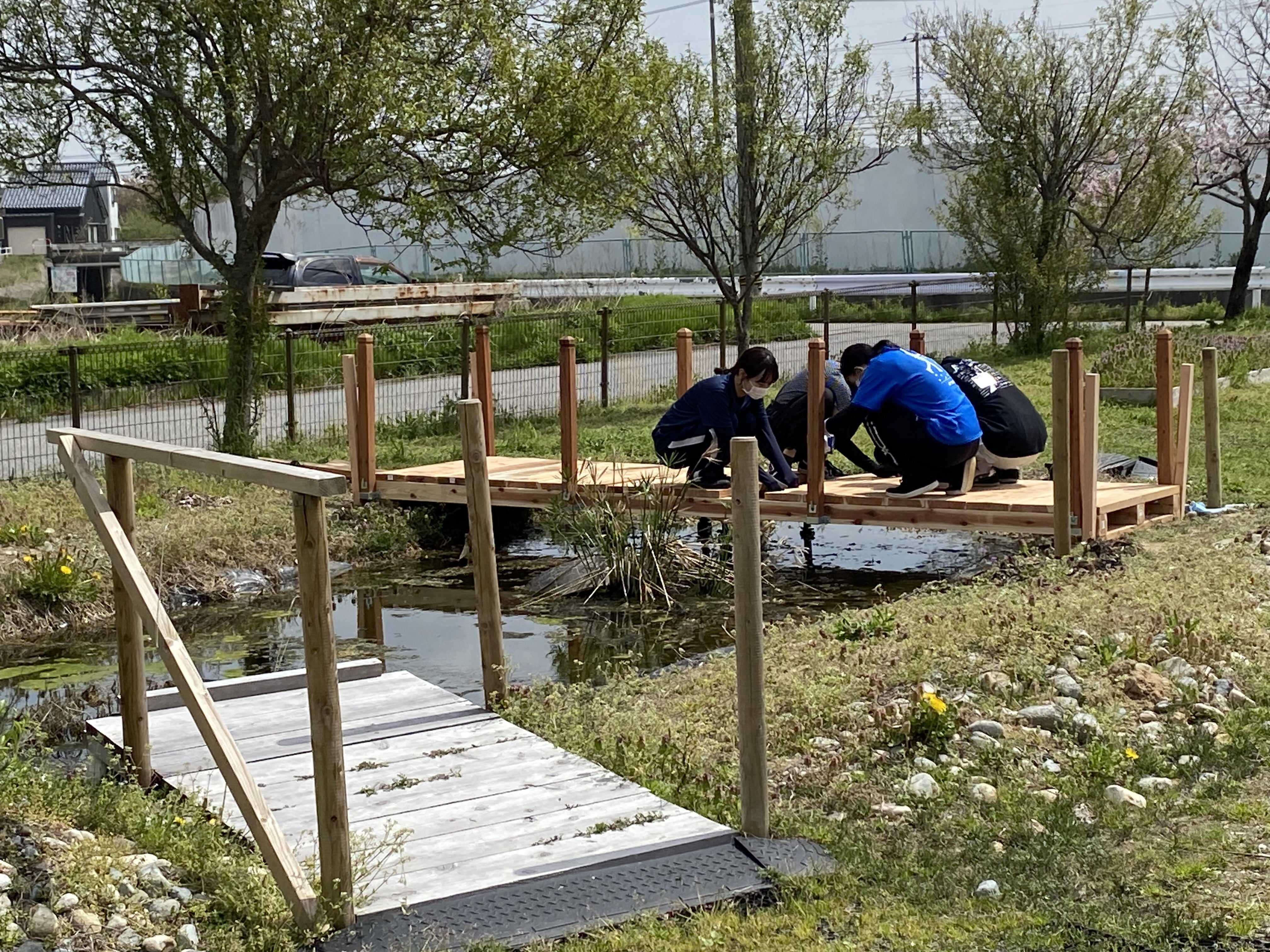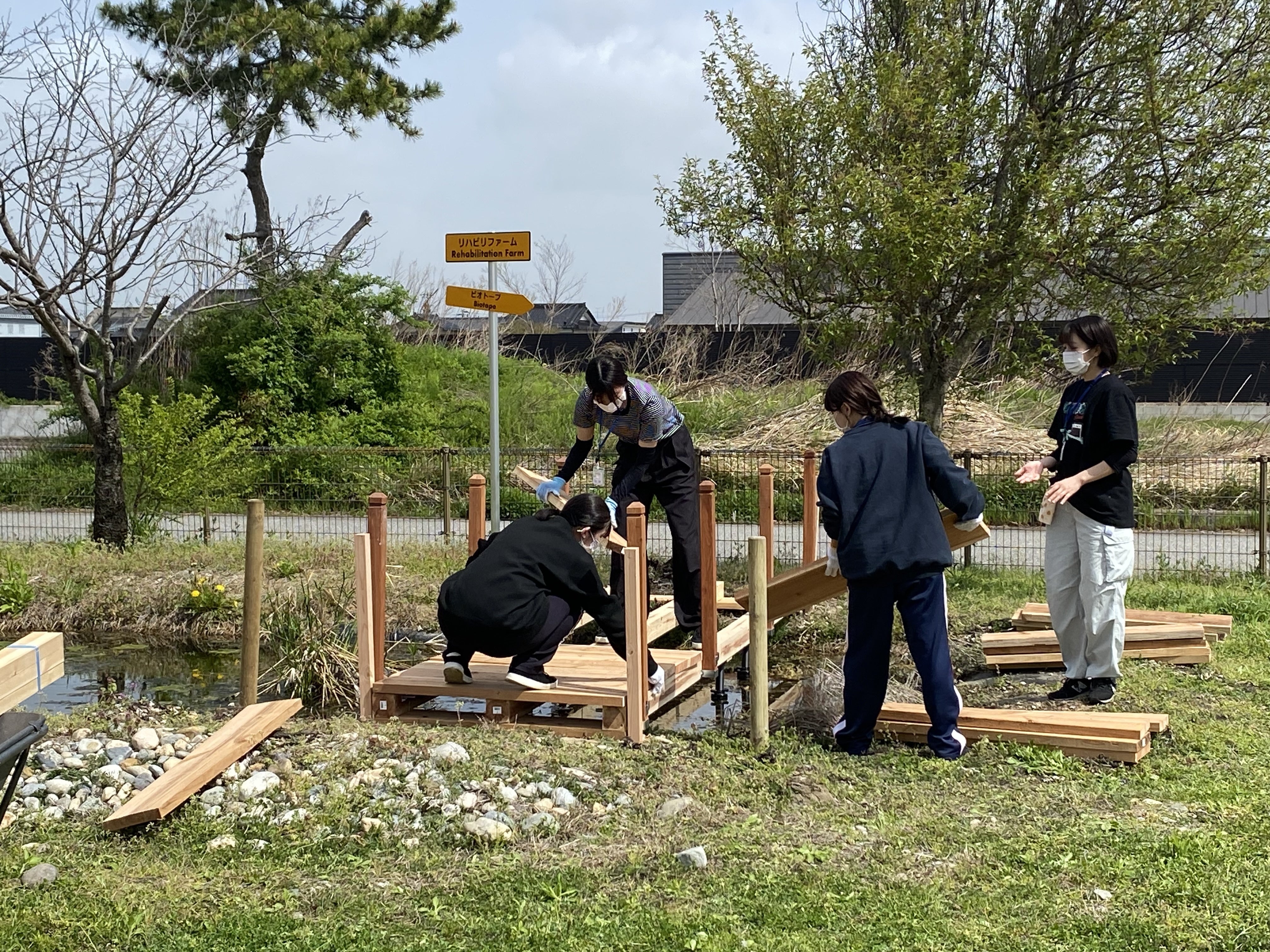 4月には、10名のリハビリ新人スタッフが、ビオトープに橋を作ってくれました!