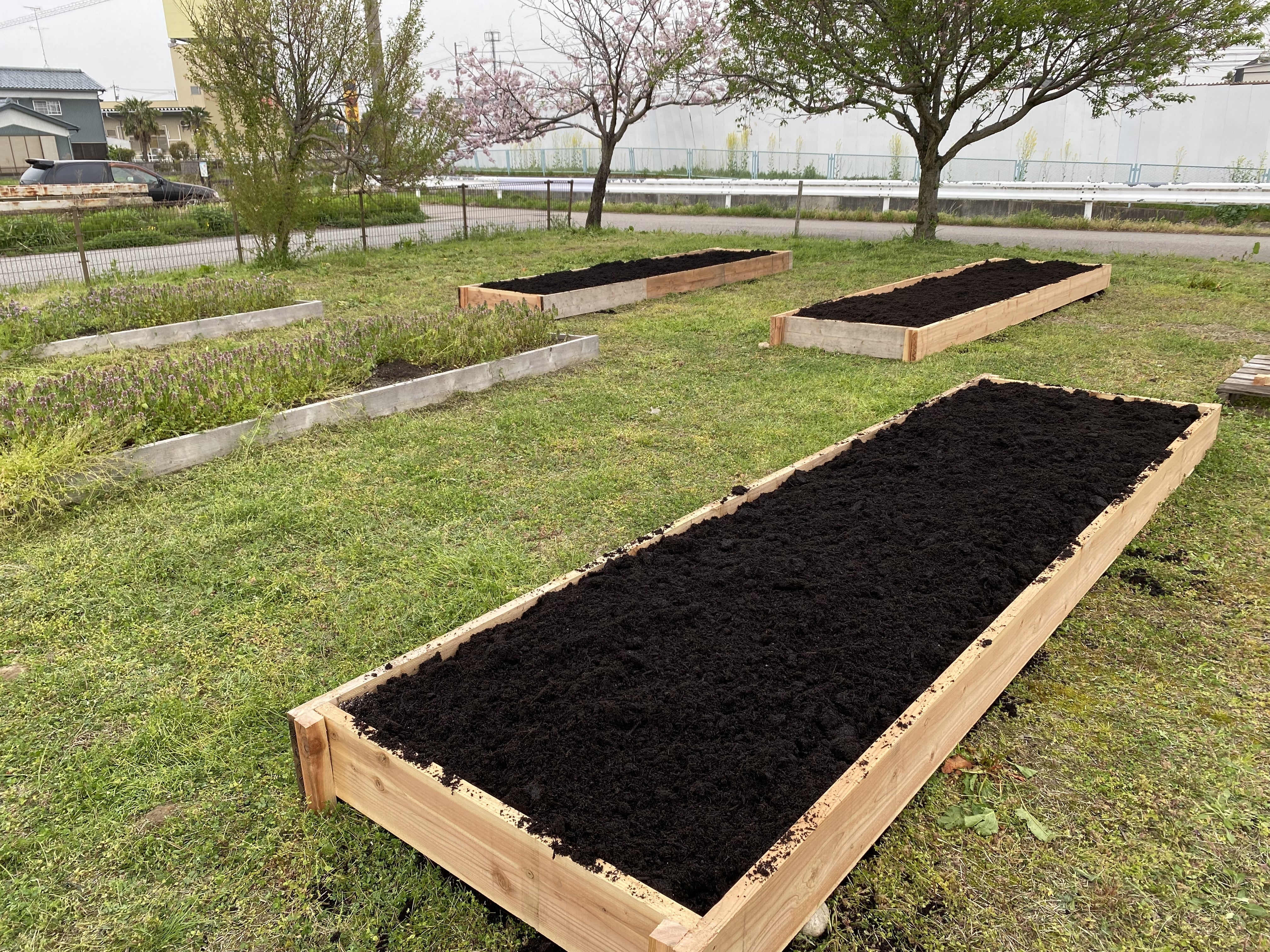 さつまいものレイズドベッドのエリアも3基増設。今年の10月の収穫祭は盛り上がりそうです。