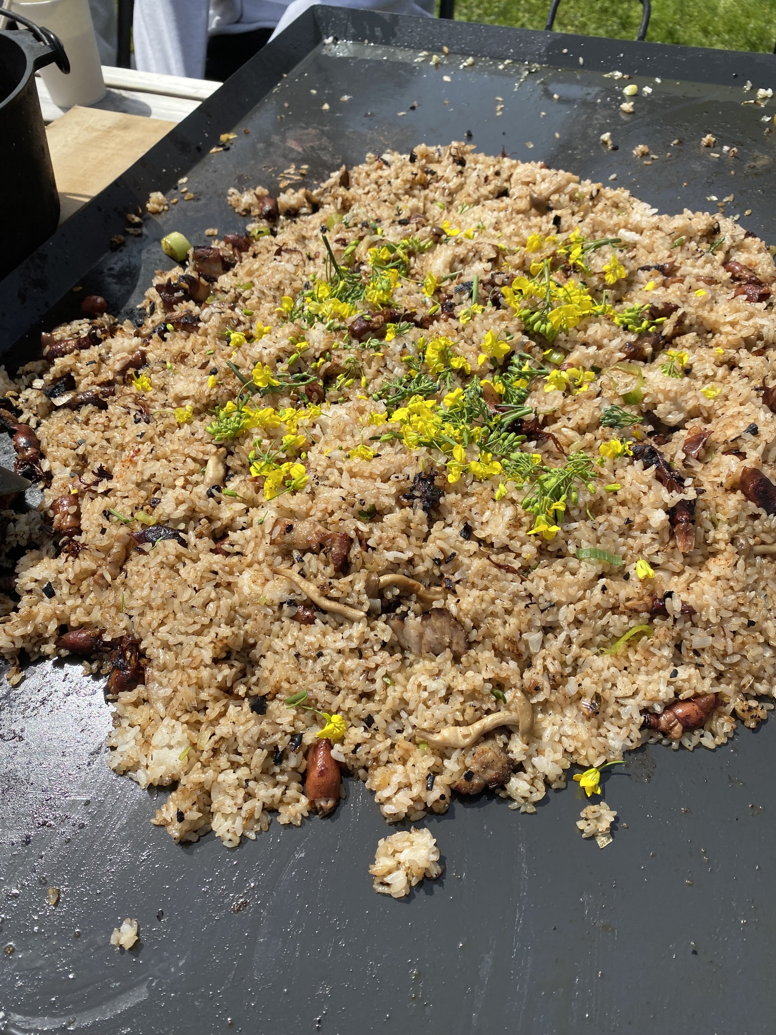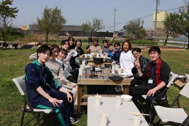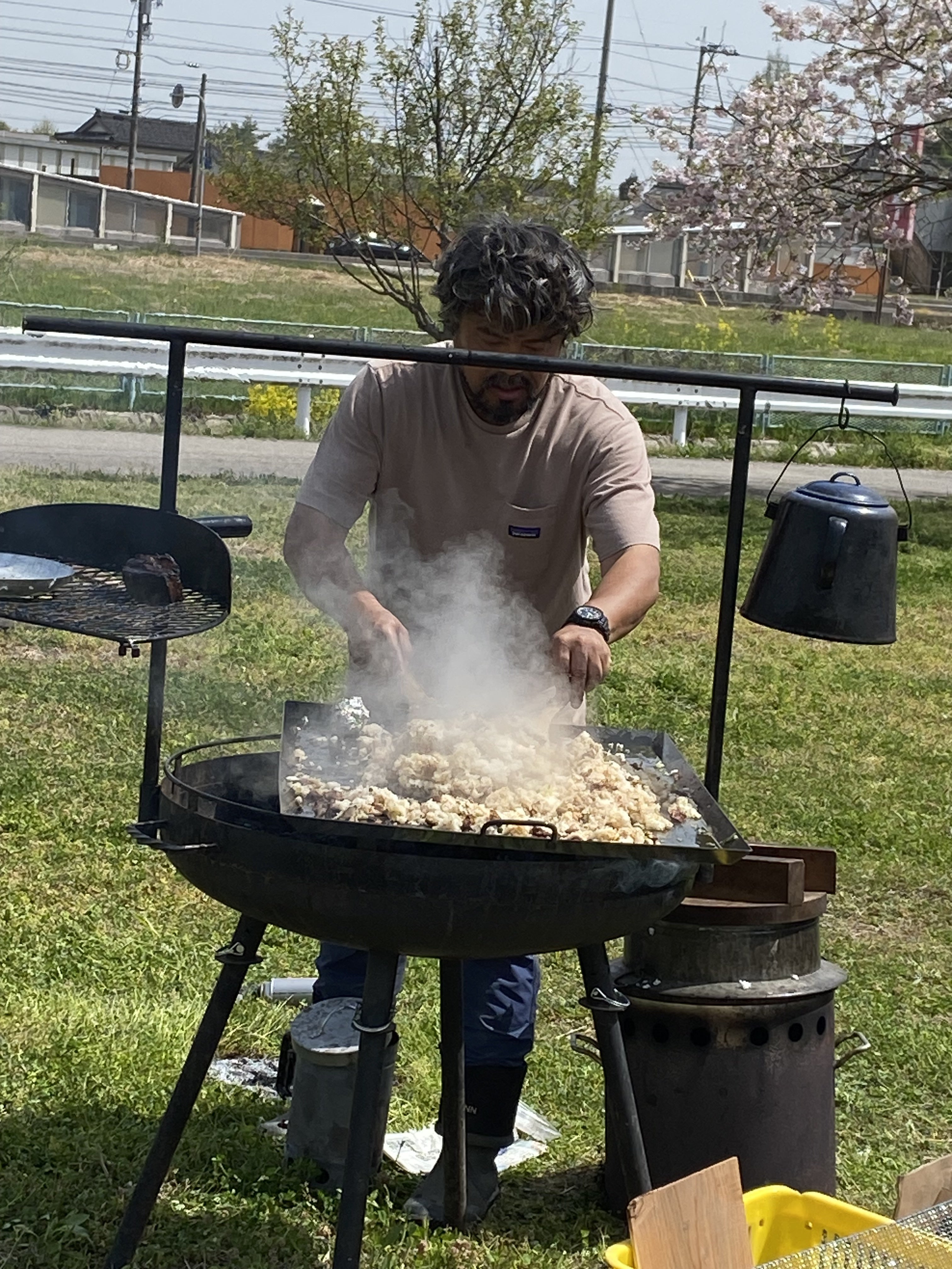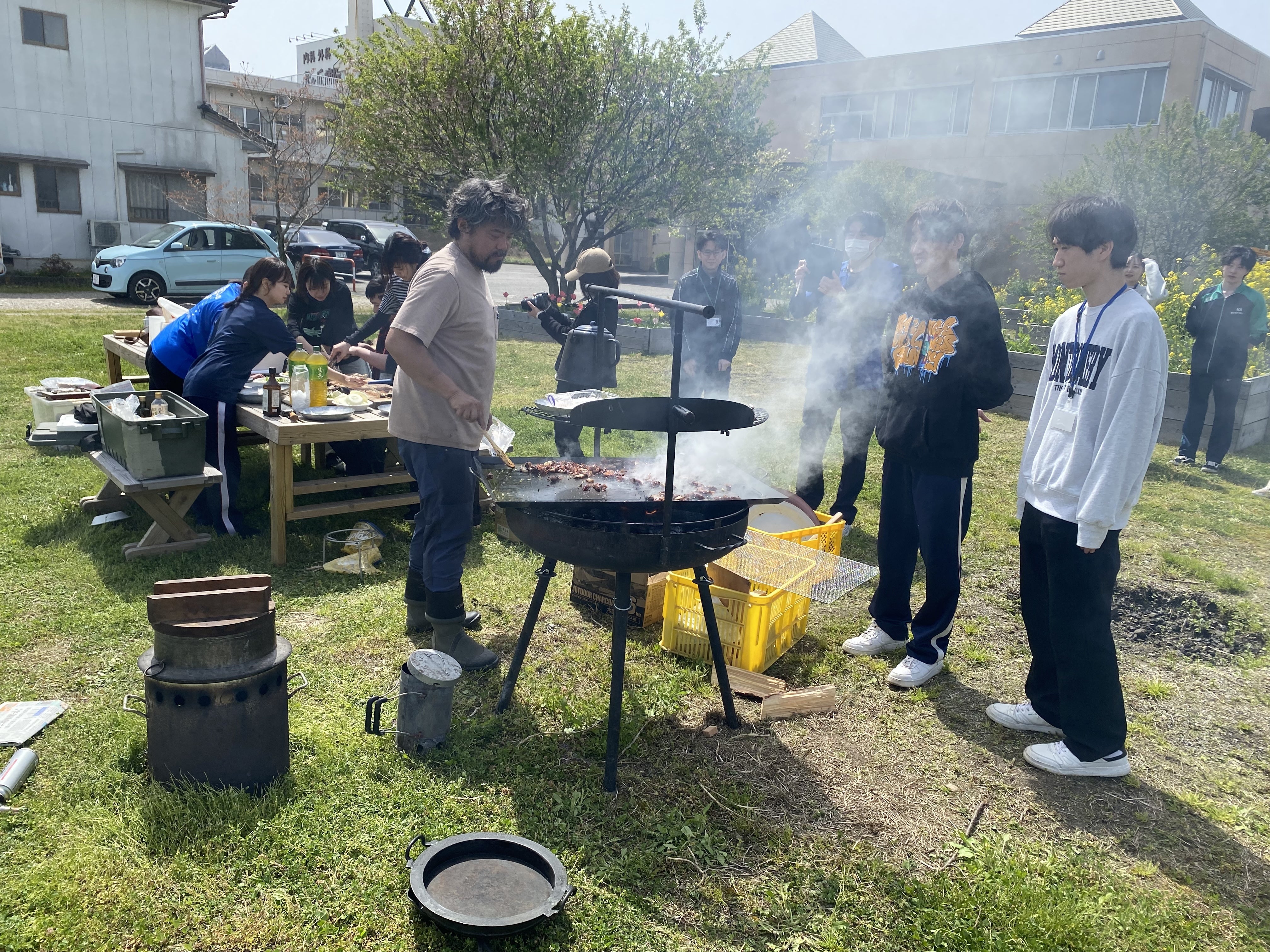 リハビリファームでの作業が終わったら、みんなで焚き火でBBQ.