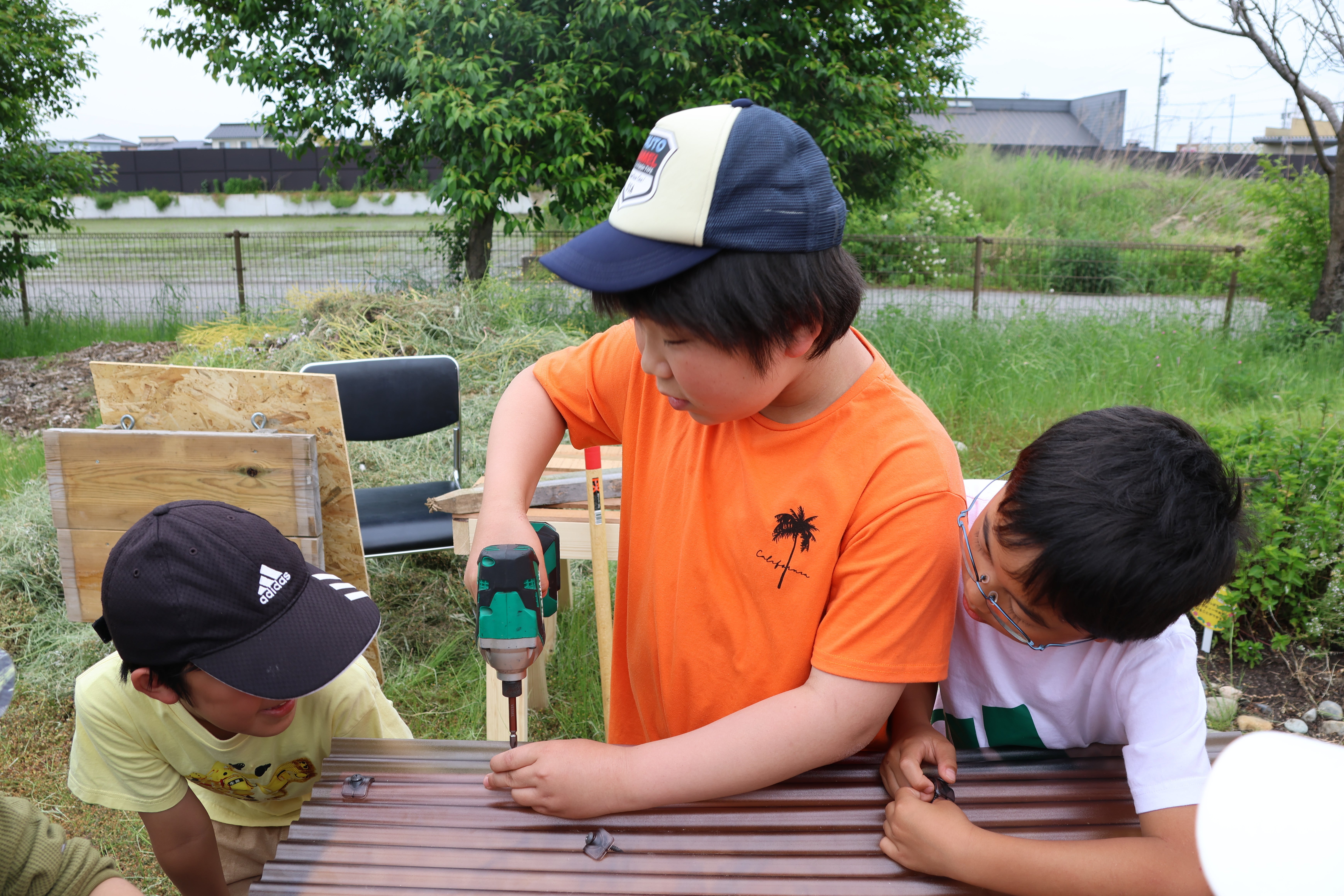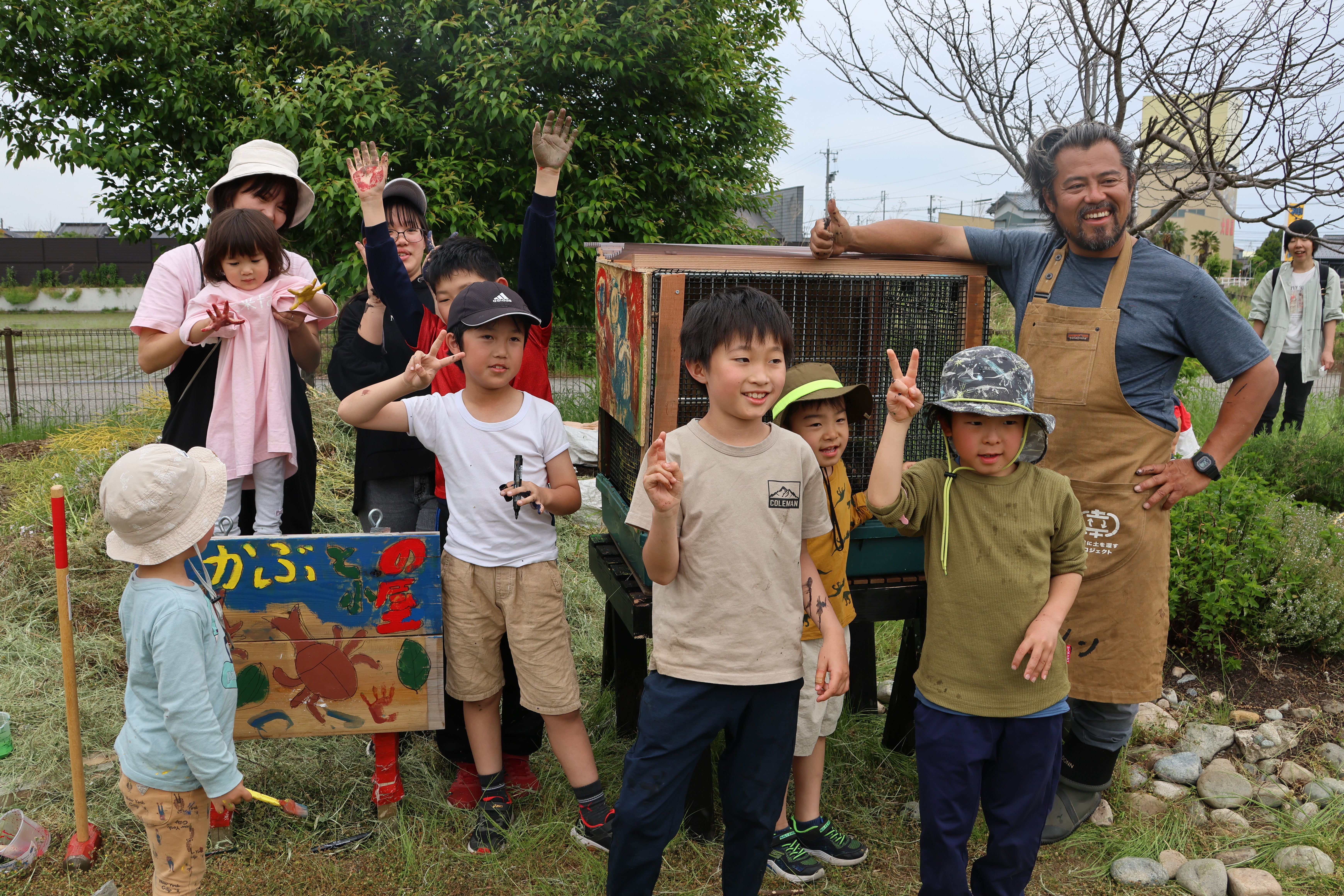 そして、5月のリハビリファームでの畑の学校では、参加者のみんなとひろ先生で、「カブトムシ小屋」を制作しました。