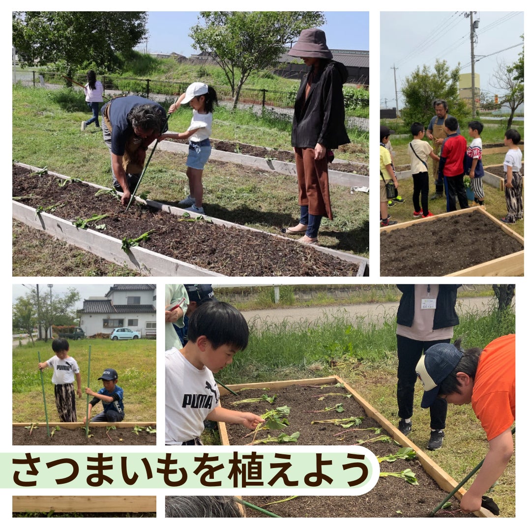 さつまいもをレイズドベッドにみんなで植えました。今年の収穫祭でたくさん収穫できるの楽しみです。