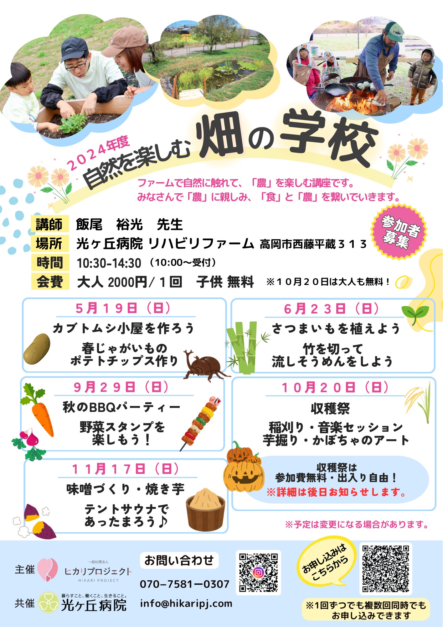 残念ながら、6月の自然を楽しむ畑の学校は、雨天にて中止となりましたが、9月からまた開催します!ご参加お待ちしています。