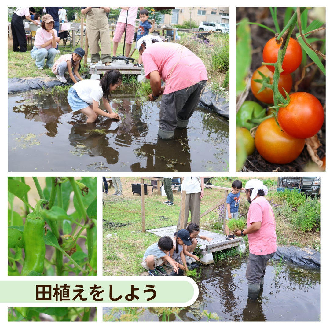 ビオトープに子どもたちが田植えをしました。収穫祭でみんなで収穫が楽しみです。