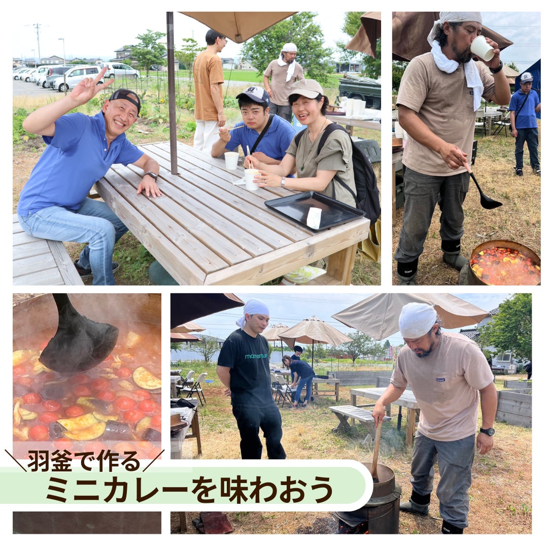 今回のリハビリファームのメニューは「羽釜で作るミニカレー」