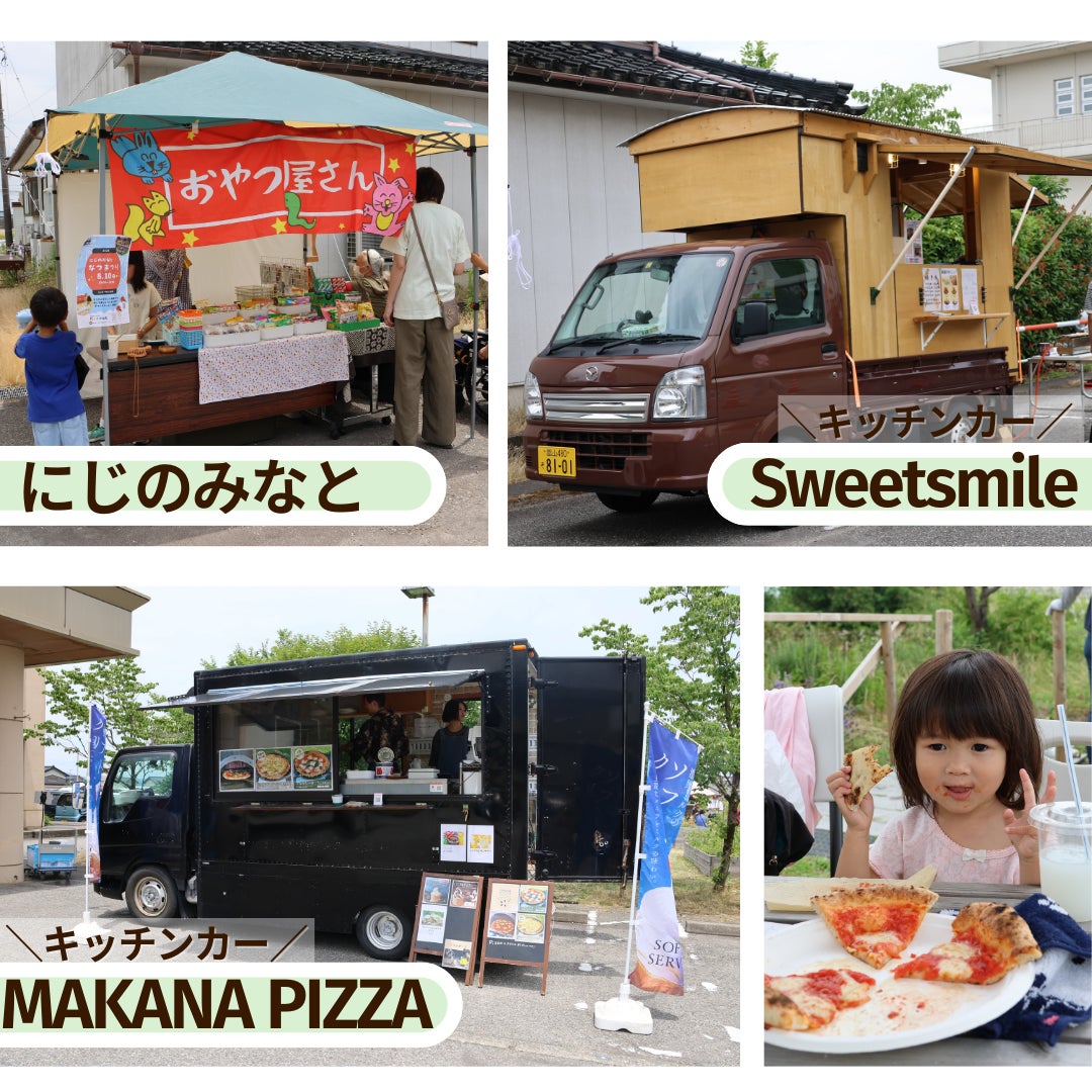 キッチンカーがMAKANA PIZZAさんとSweet smileさんの2台に、駄菓子屋さんのにじのみなとさんもいらしてくださり、大賑わいでした。