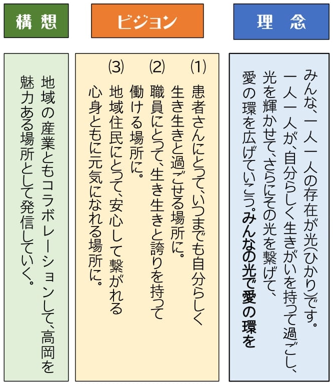 当法人では、医療から、介護、福祉、予防医学にわたり、地域の皆様に寄り添ったサービスを提供しており、地域に根付いた病院という役割を持っています。ただ、今までの「病院」という場所のイメージは、「病の人のための場所」といった少し暗い印象であったと思います。しかしこれからは、「病院」という枠を超えて、地域とつながる居場所となるべきではないかと考え、「ひかりプロジェクト」と称して、さまざまな取り組みを行なっています。そのきっかけエピソードは2つあります。