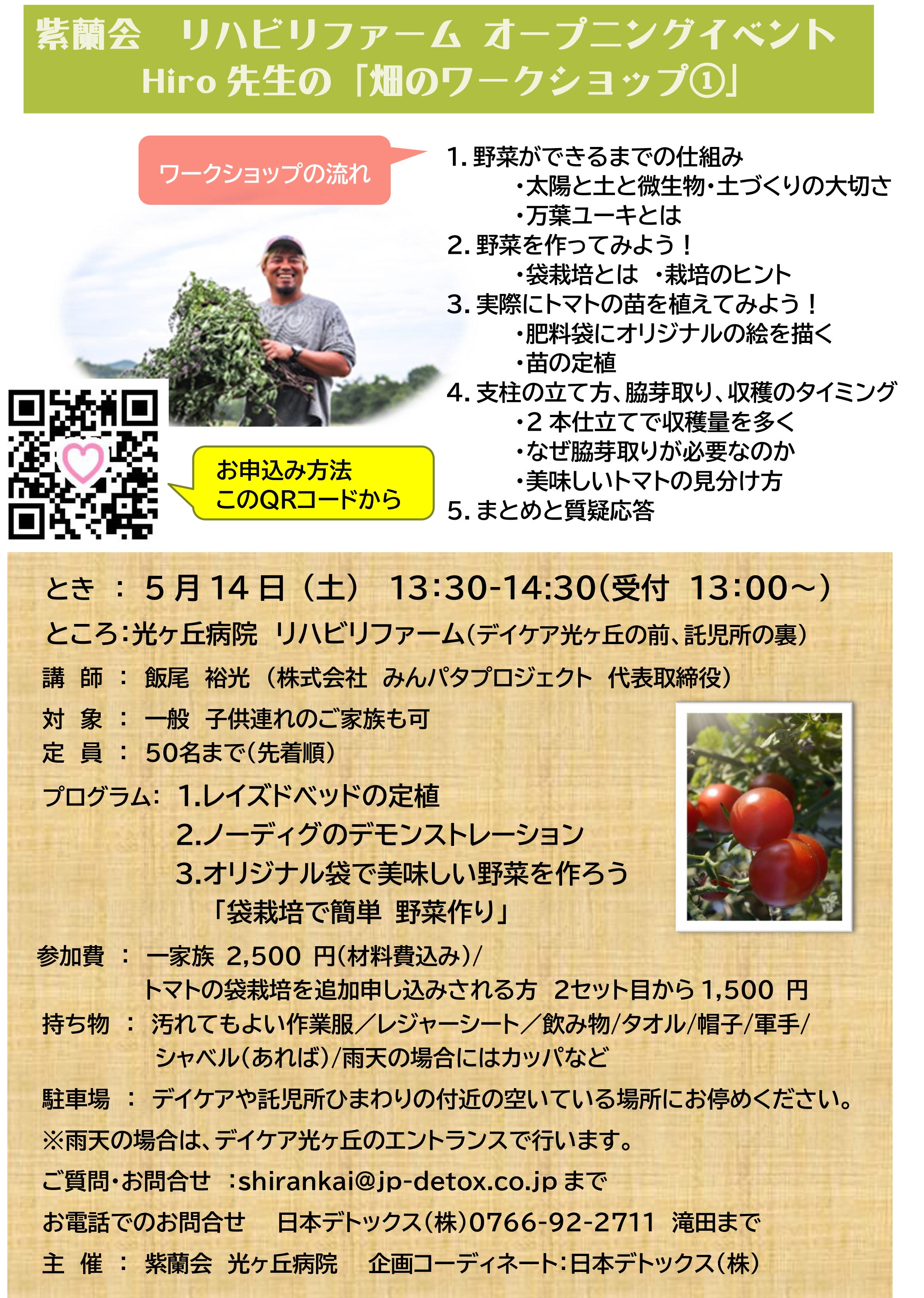 ◆5/14 Hiro先生の「畑のワークショップ①」オープニングイベント