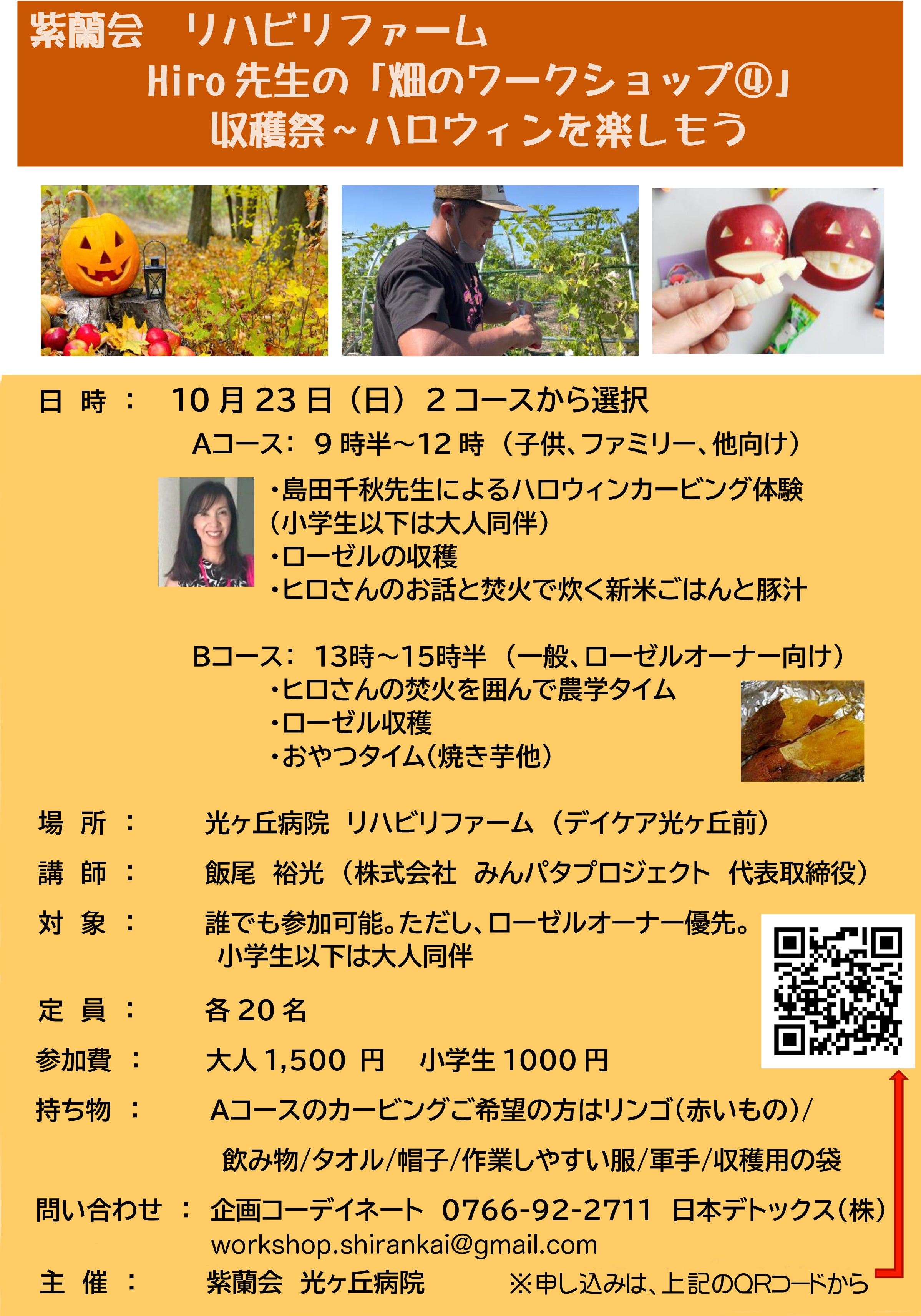 ◆10/23 Hiro先生の「畑のワークショップ④」収穫祭~ハロウィンを楽しもう。
