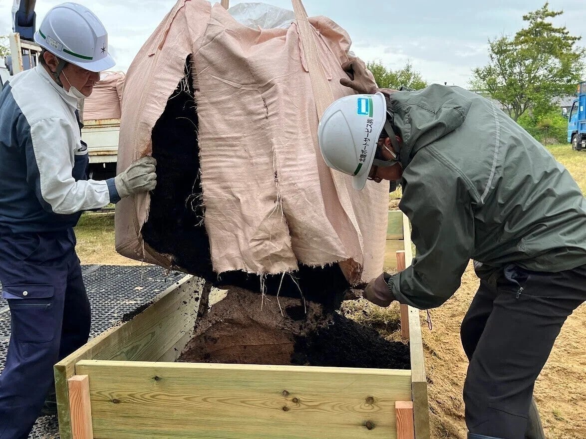空き地だった場所に設置した「レイズドベッド」は、木材を使って、地面の上に枠を作り、土を高めに盛り上げた場所で、野菜や植物を育てる栽培方法です。