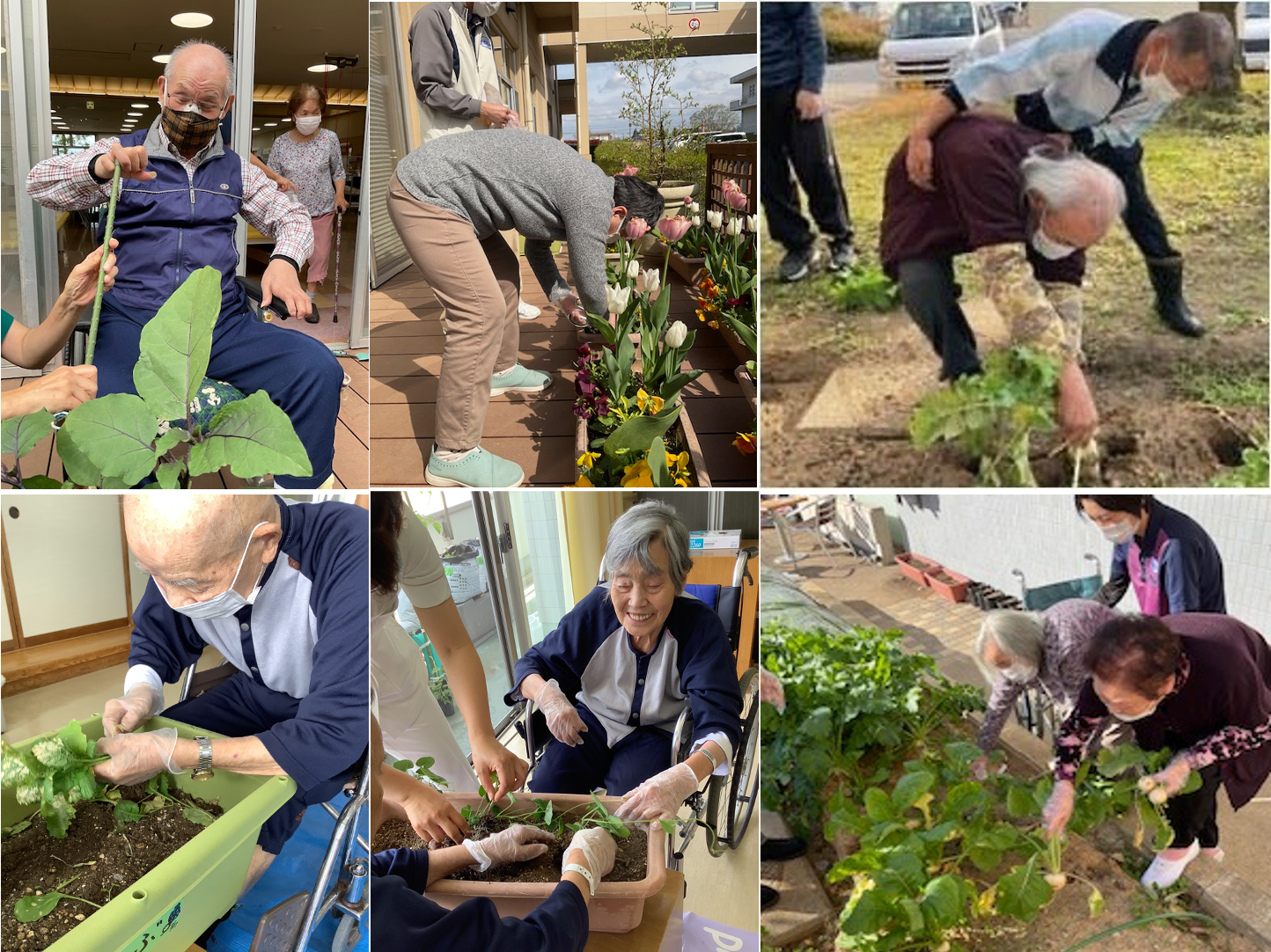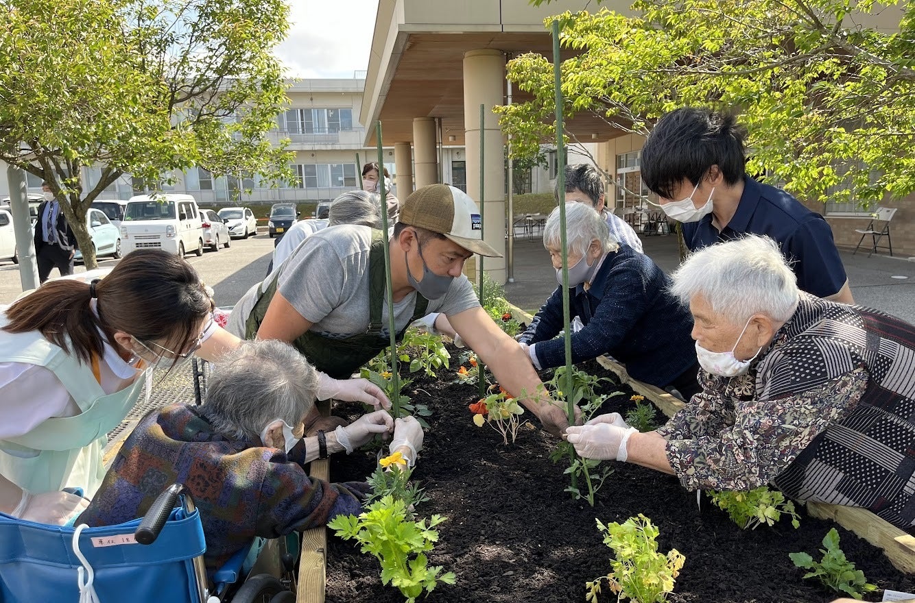 2021年から、デイケア光ヶ丘・おおぞら通所リハビリテーション・介護老人保健施設おおぞらで園芸療法を取り入れ始めました。プランターなどやテラスなどの小さな場所で、植物を植えて育てて収穫するという小さなところから開始したのですが、土に久しぶりに触る喜び、毎日植物の育ちを見てお世話する喜び、収穫する喜び、それを食す喜びなどを通じて、自然と患者さんだけでなく、サポートしている職員も、みんなが笑顔になる時間がどんどん増えていきました。園芸を通じて、患者さんも職員も、みんな一緒に感動し、楽しむことができることがわかりました。